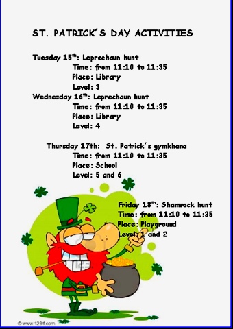 Tomorrow we are going to start with our St. Patrick´s activities. Take a look at the programme.
