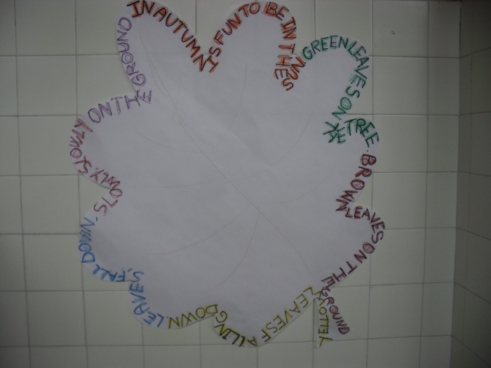 Teacher Vanessa, the attendant of the library of our school, proposed children create their own shape or concrete poem related with the autumn.