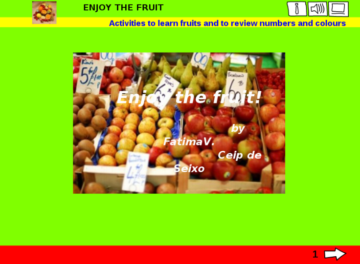 Fátima V. do CEIP de Seixo created this easy lim to learn fruit and to review numbers and colours.I think it’s really suitable for my students in level 1.