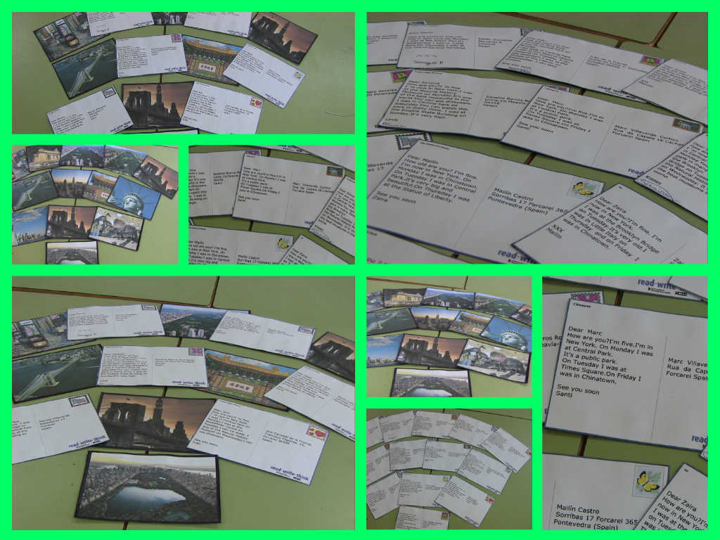 Levounos varios días( mellor dito varios recreos) ter as nosas postais preparadas xa que só contamos cun ordenador que nos permita imprimir na clase así que, os rapaces tiveron que traballar de un en un.Valeu a pena a longa espera!!