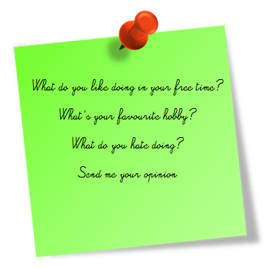 In my free time I like playing football and playing computer games. I don’t like playing table tennis or going fishing. My favourite activite is playing computer games. ¡I love playing computer games! I hate collecting stumps and stickers. I like doing magic tricks.