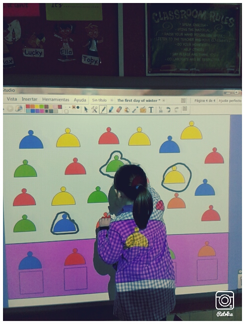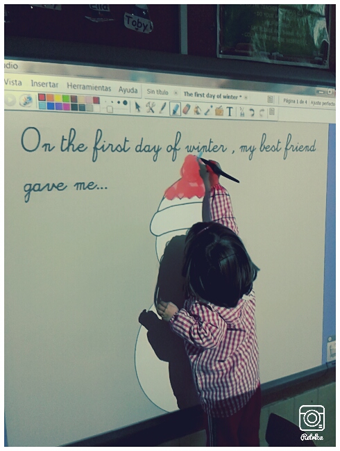 Last Friday, we could see the first snowflakes falling down. It was an amazing and freezing day!!! So, I decided to take the opportunity to present a new book called “The first day of winter” by Denise Fleming to my kindergarteners which helps us review numbers and colours and introduce some winter clothings.