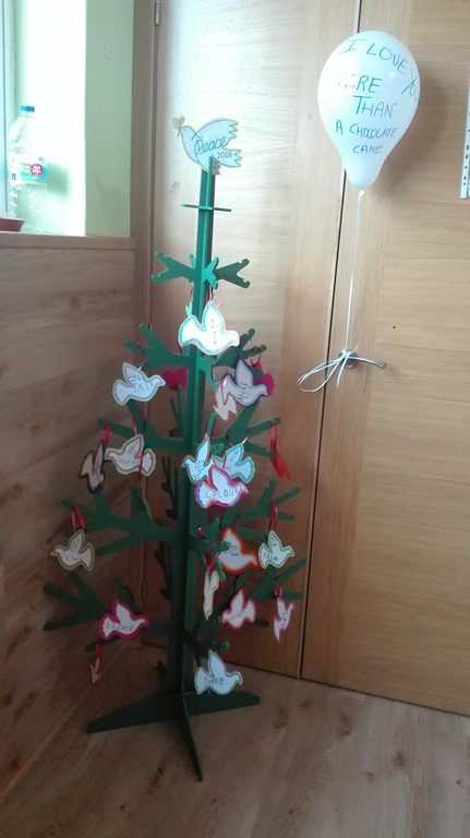 At the beginning of the week, we developed an activity in different levels of Primary in order to celebrate School Peace and Non-Violence Day . The idea was decorate a tree with some dove shapes and write on them something related to PEACE.