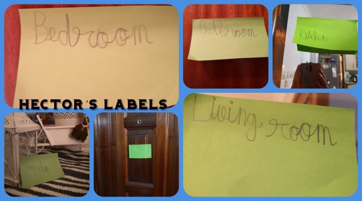 Quen dixo que estudar o vocabulario en inglés era aburrido. Desta vez, a tarefa de casa consistíu en etiquetar todos cuartos da casa.