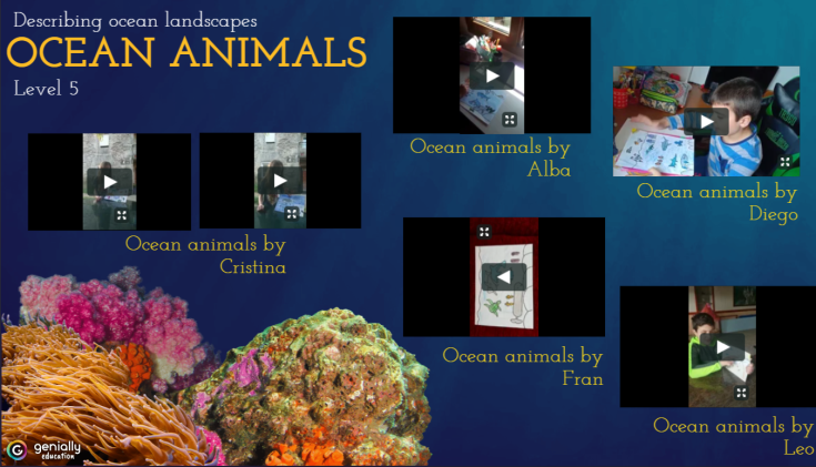 Ocean animals Today I would like to share this project about ocean animals carried out during these two last weeks of the quarantine in level 5. Congratulations guys! Click on the pictures to watch the videos. Compartir: Feixe clic para compartir en Facebook (Se abre en una ventana nueva) Facebook Fai clic para compartir en X (Se abre en una ventana nueva) X Gústame Cargando... Relacionado Deixar un comentario Cancelar a resposta Δ