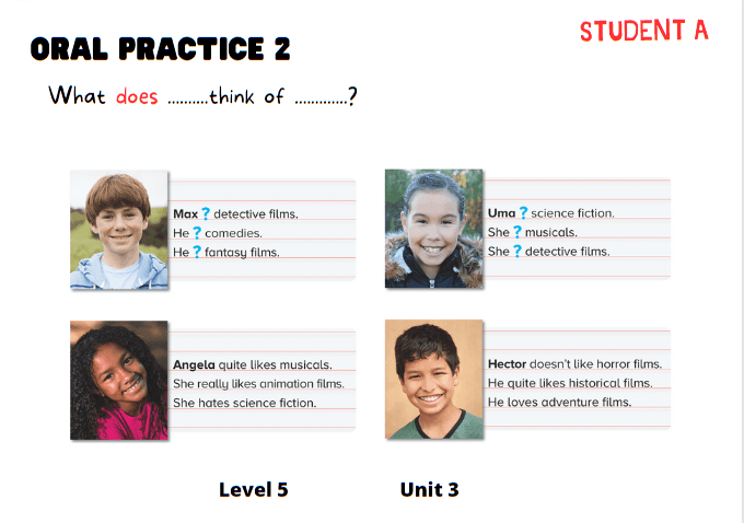 In this pair work activity students will complete the missing information by asking about people’s interest.
