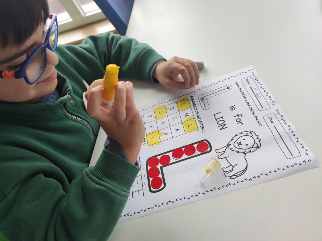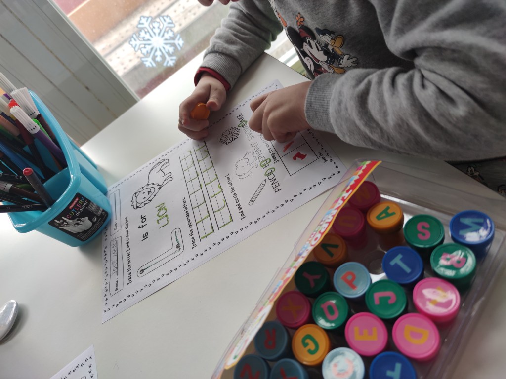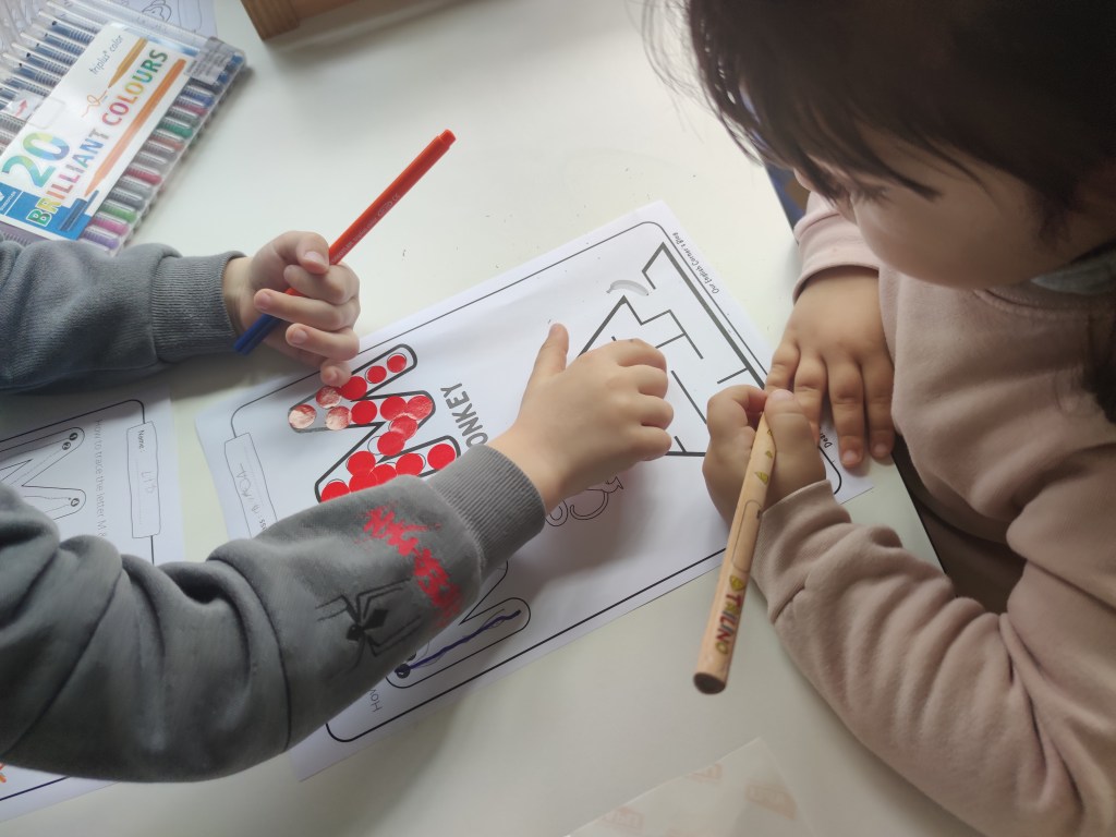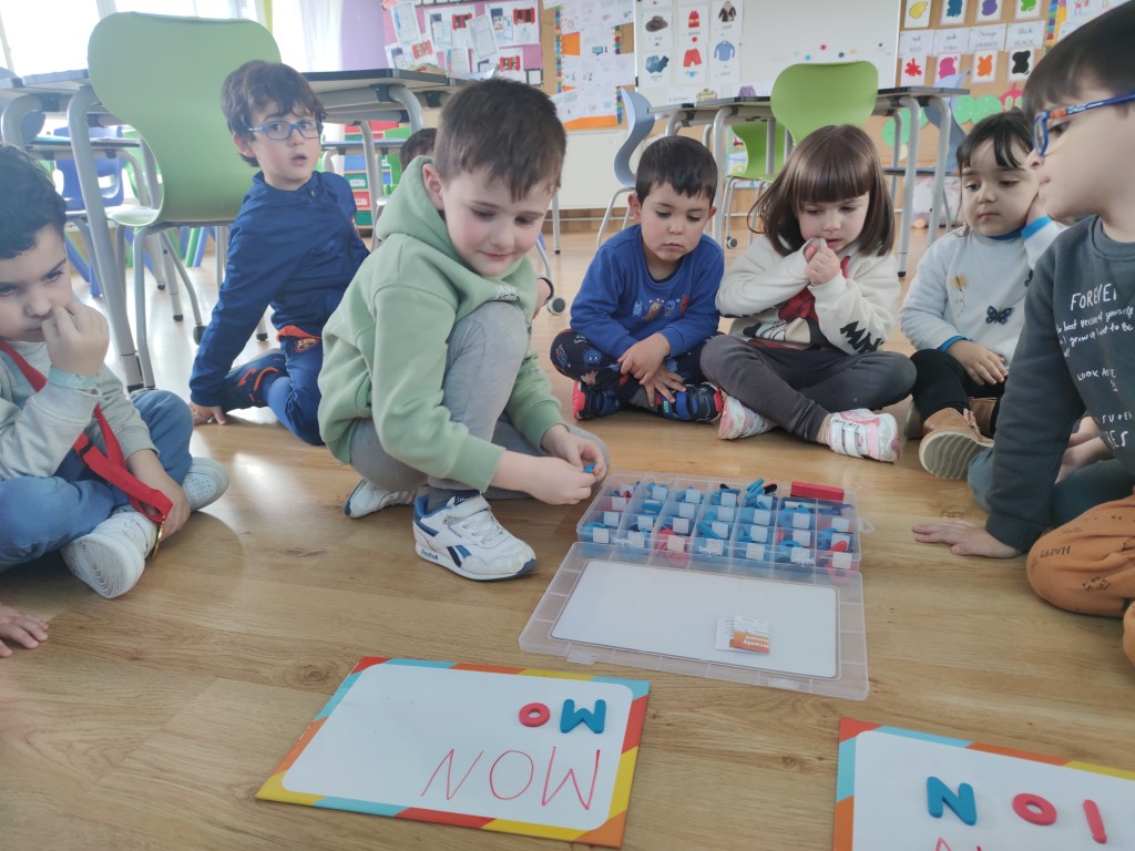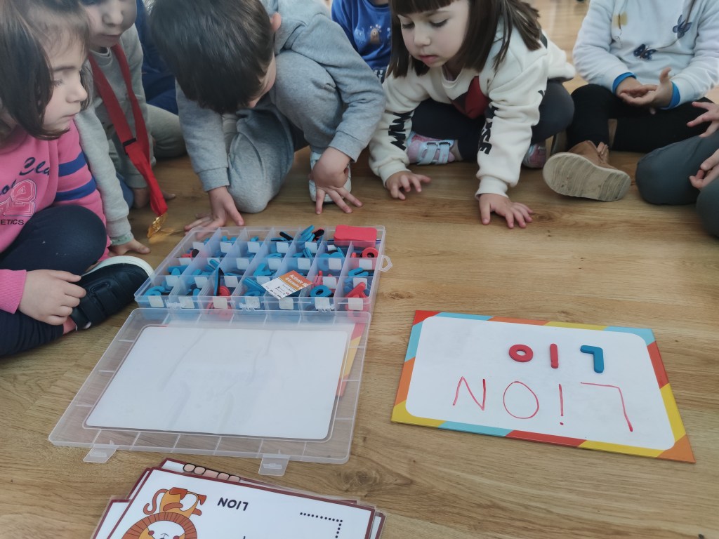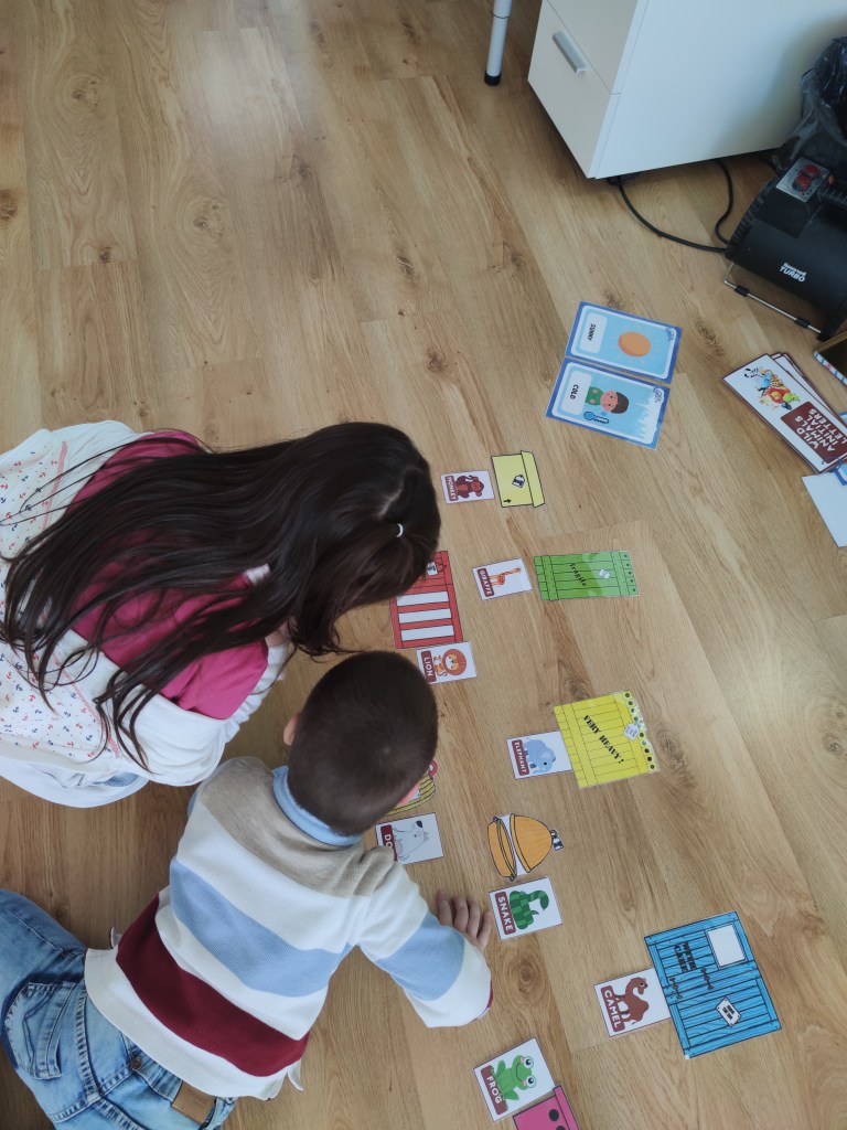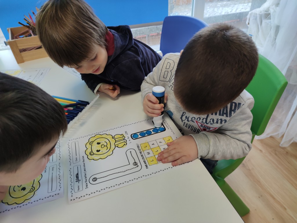 Moreover, we focused on how letters sound. Reading is not an aim in kindergarten but teaching letter sounds is one essential step in teaching kids to read. This can be done in various ways, but one of the most effective methods is to use flashcards.