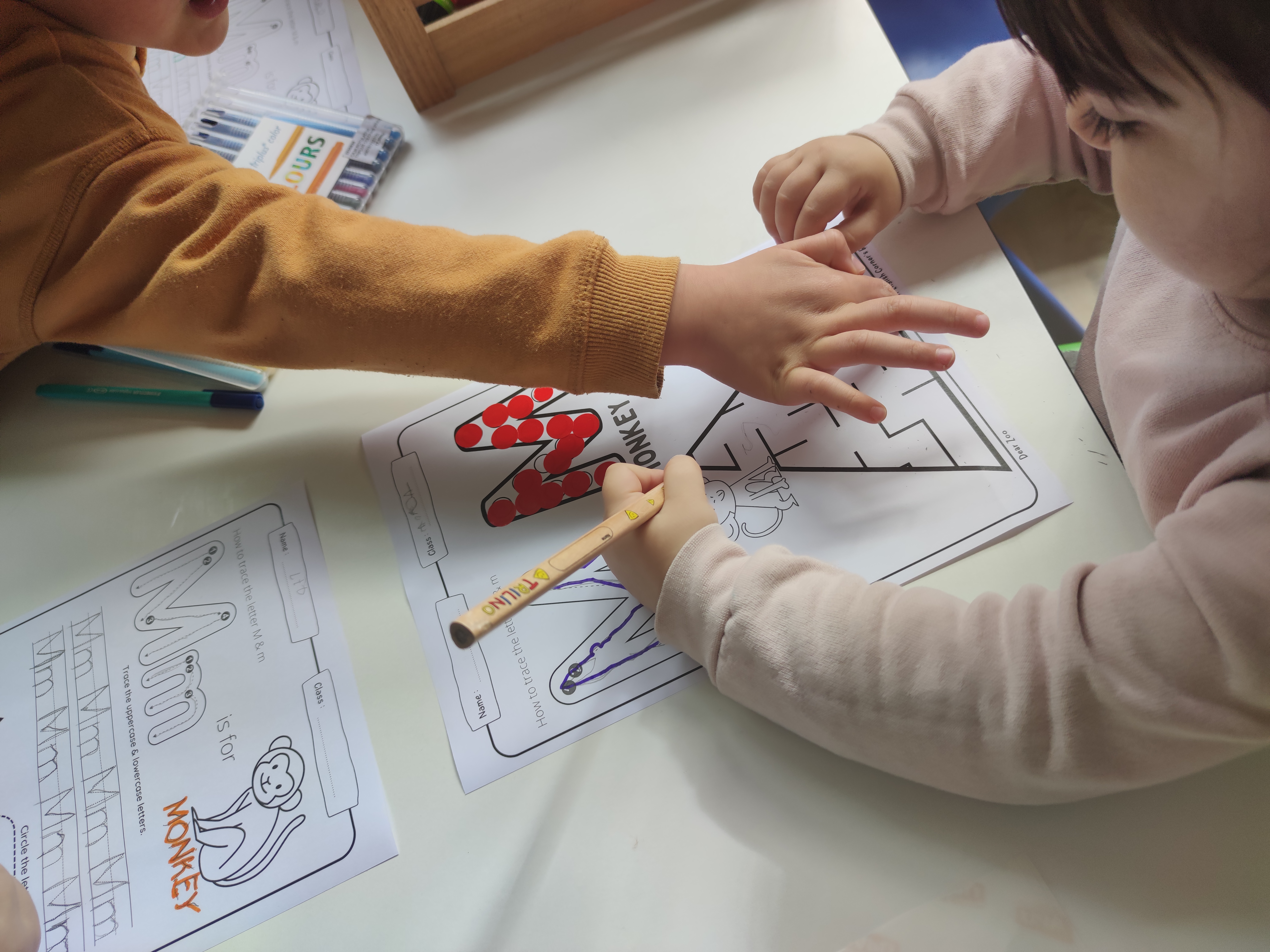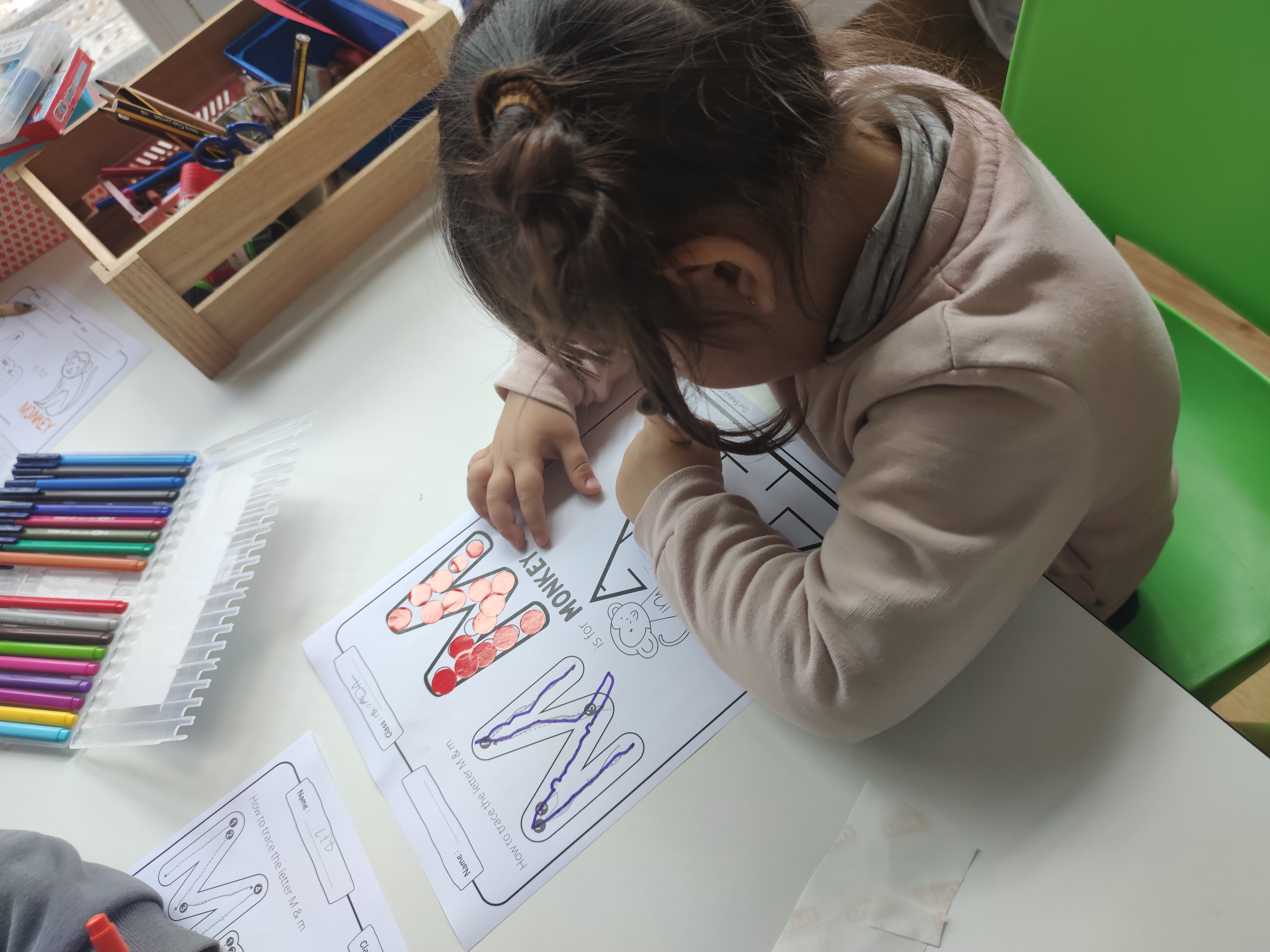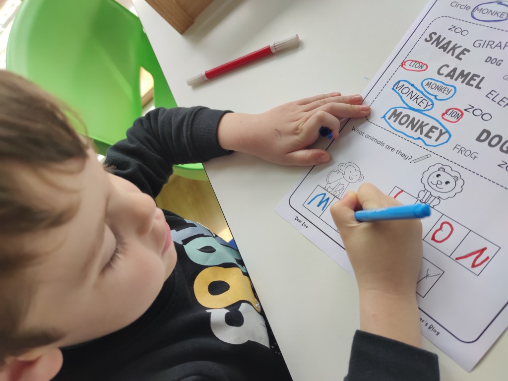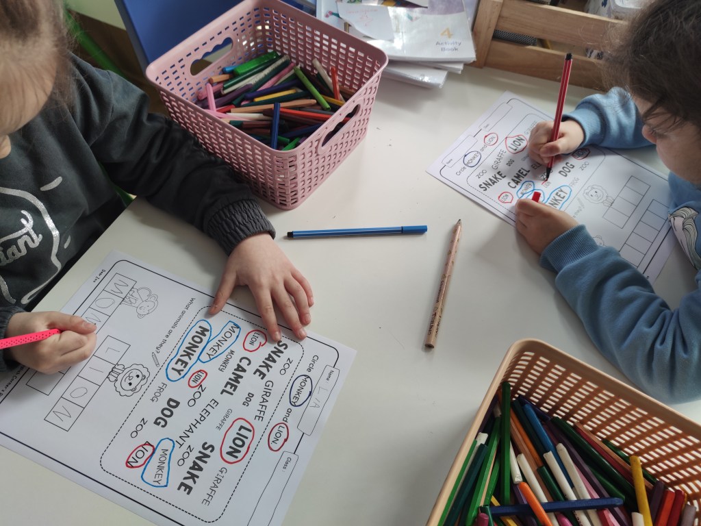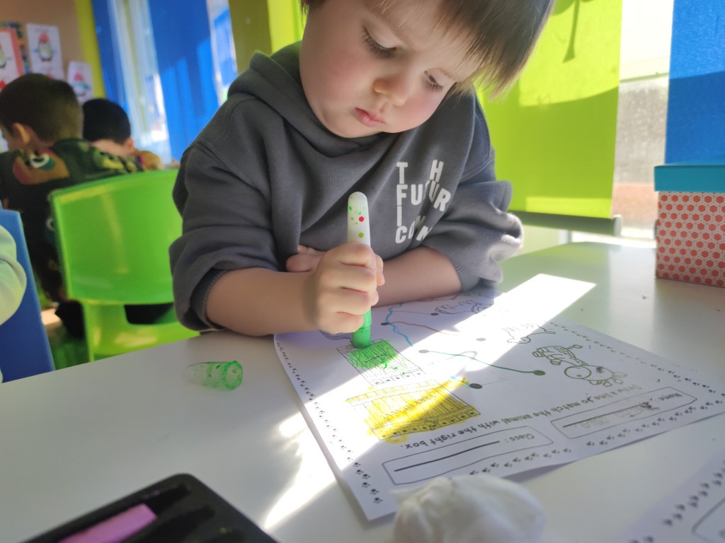 Moreover, we focused on how letters sound. Reading is not an aim in kindergarten but teaching letter sounds is one essential step in teaching kids to read. This can be done in various ways, but one of the most effective methods is to use flashcards.