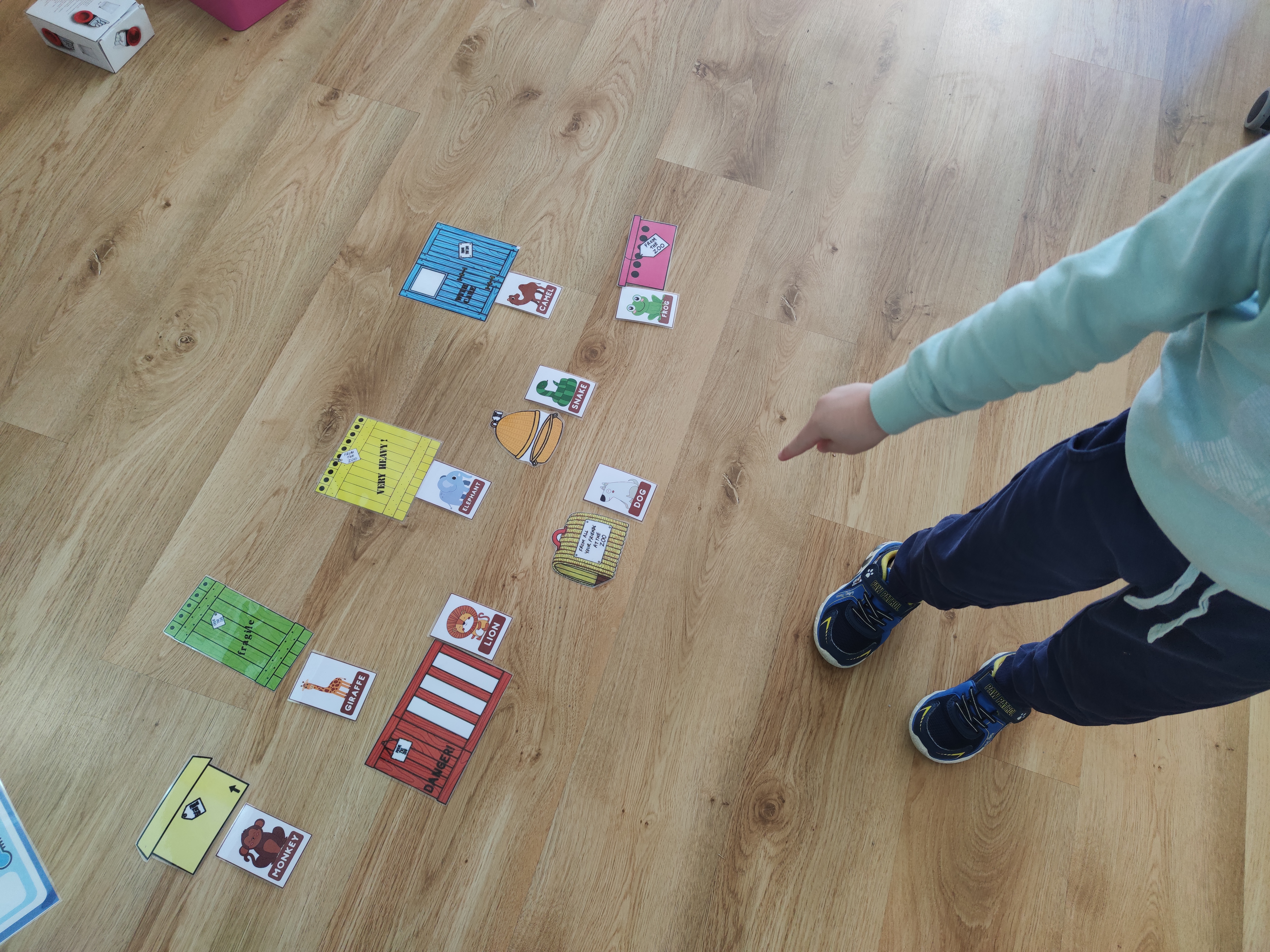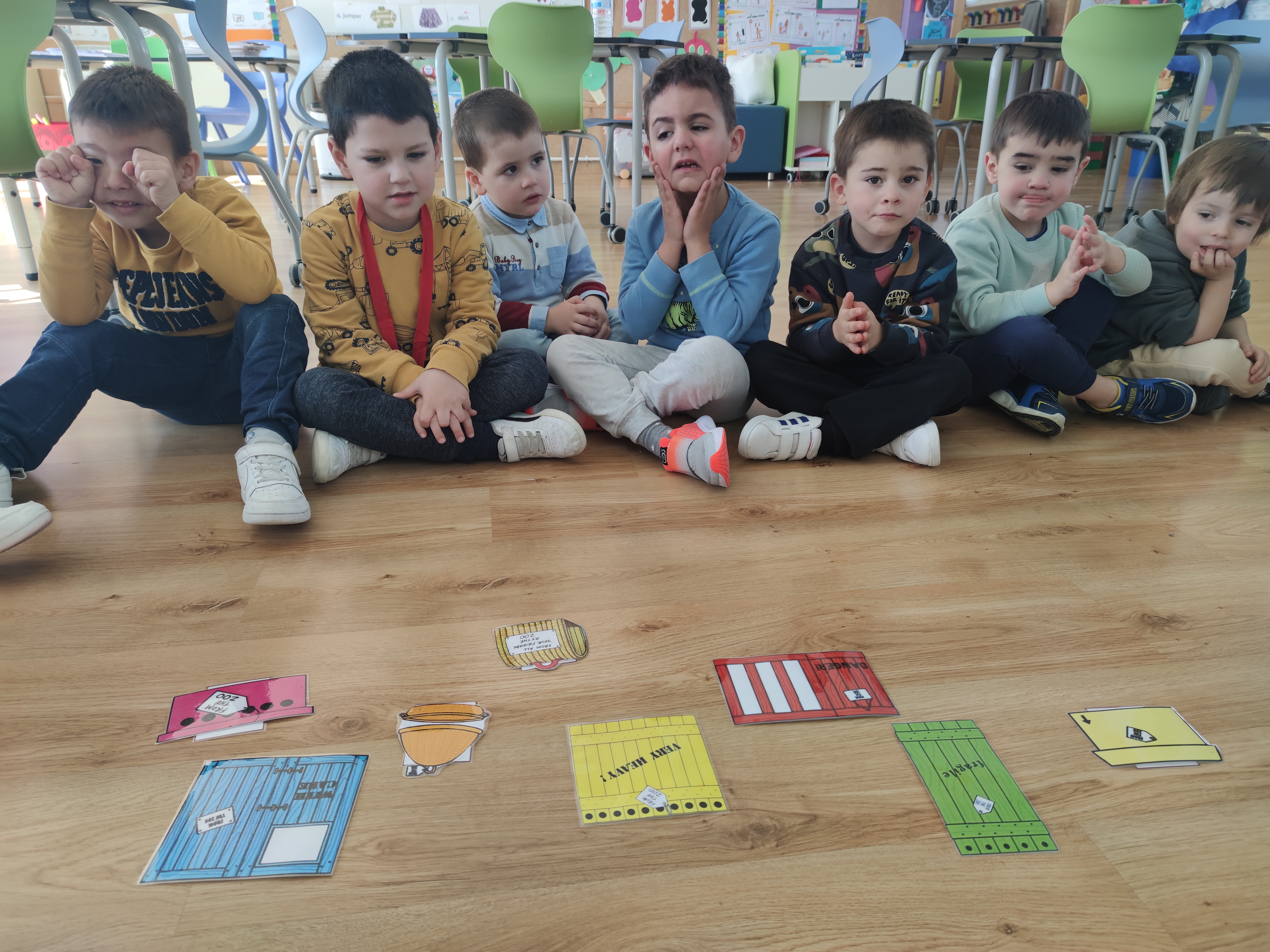 Por último, o vocabulario. Dear zoo no só nos dou a oportunidade de aprender o vocabulario dos animais dun xeito divertido senón que nos permitiurepasar as cores e adxectivos. comparar animais e establecer diferentes conexións. Parando en cada páxina, pedinlles que sinalaran obxectos da aula grandes ou pesados ou a alguén que fora alto ou algo gruñón.