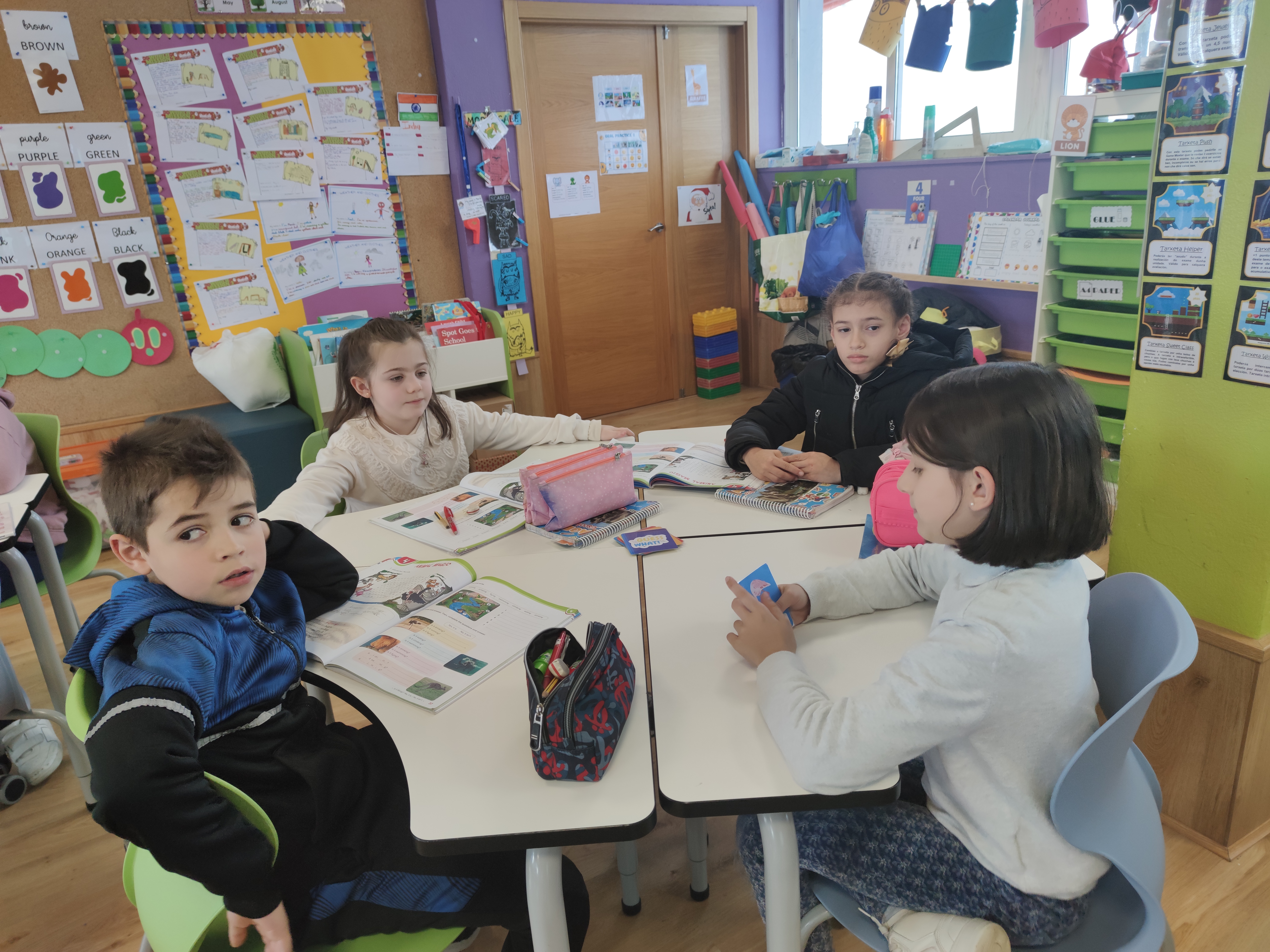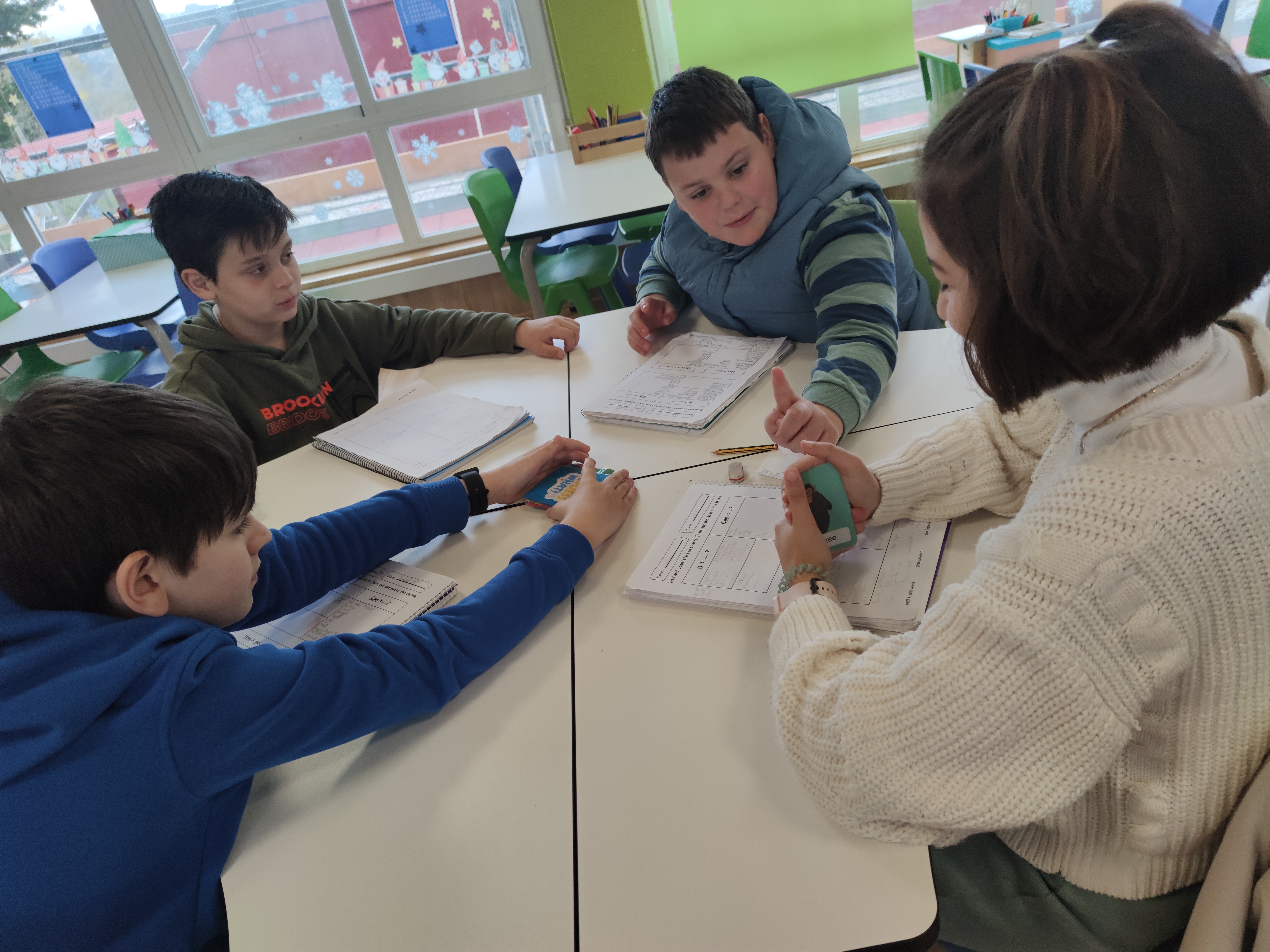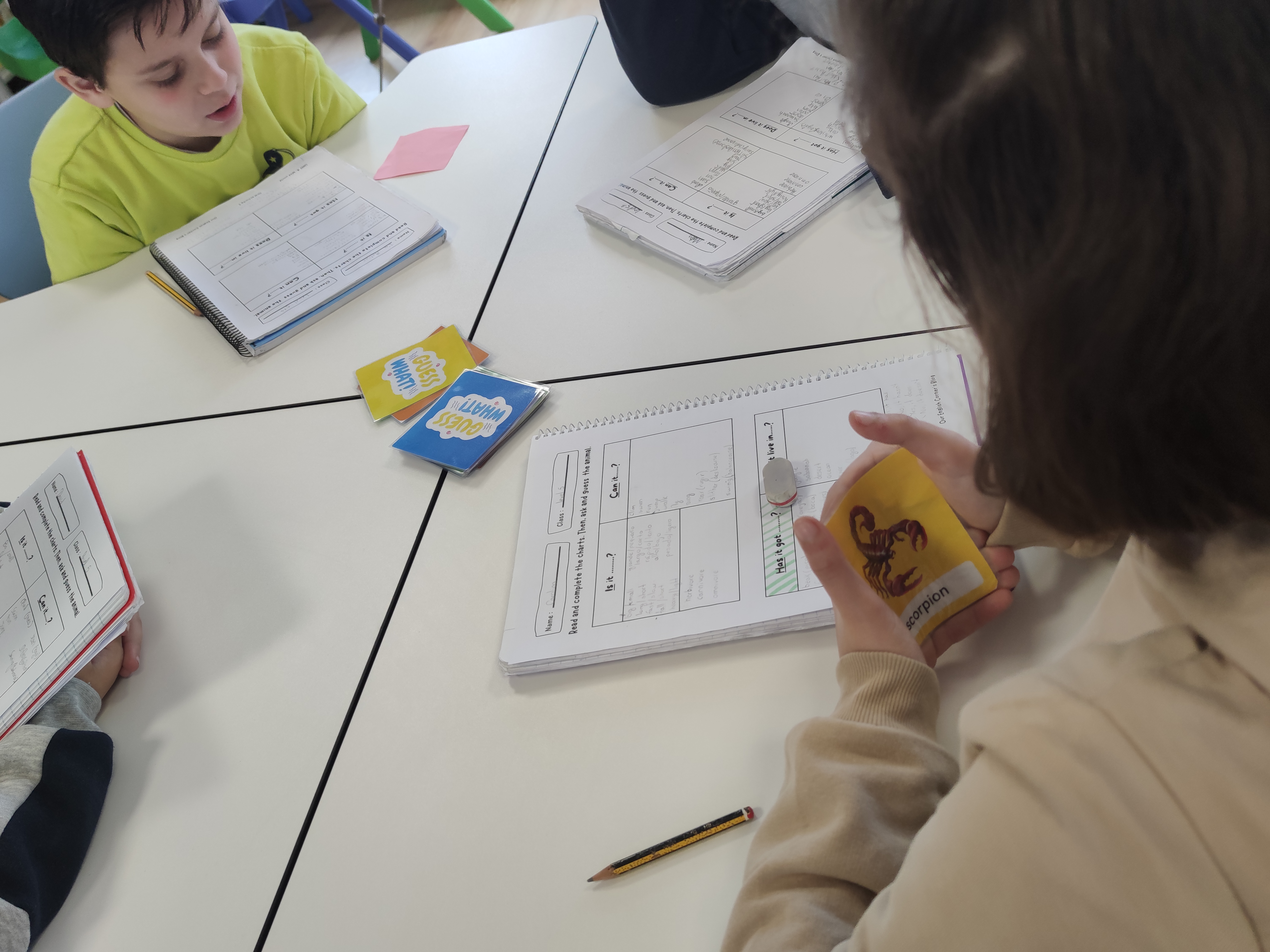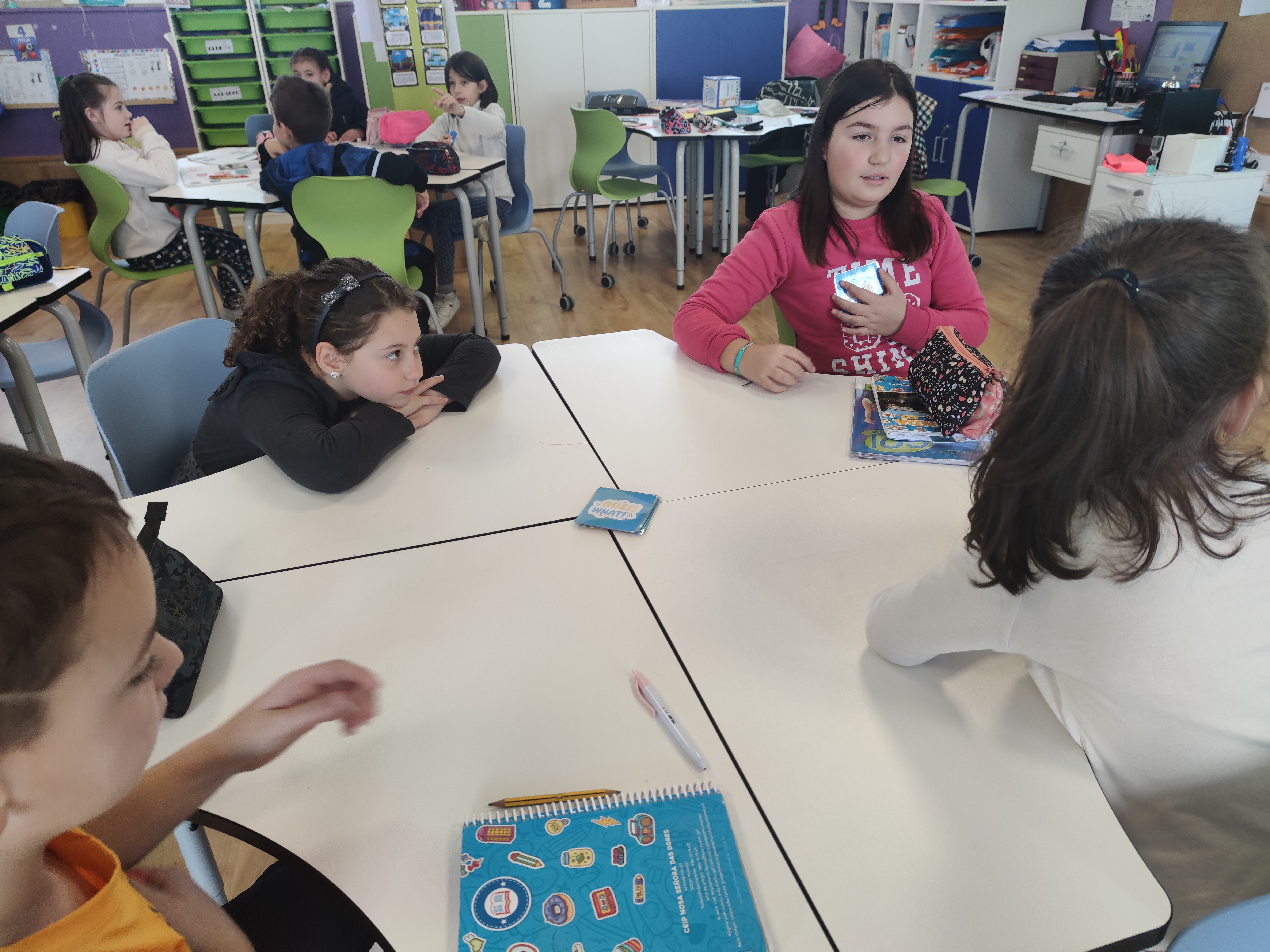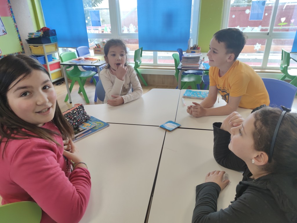 Next lesson, they played in small groups during the warm-up . It is a great opportunity not only to evaluate students’ oral expression but also to help and encourage them during the game.
