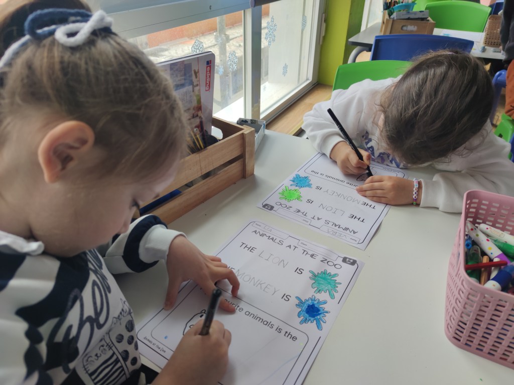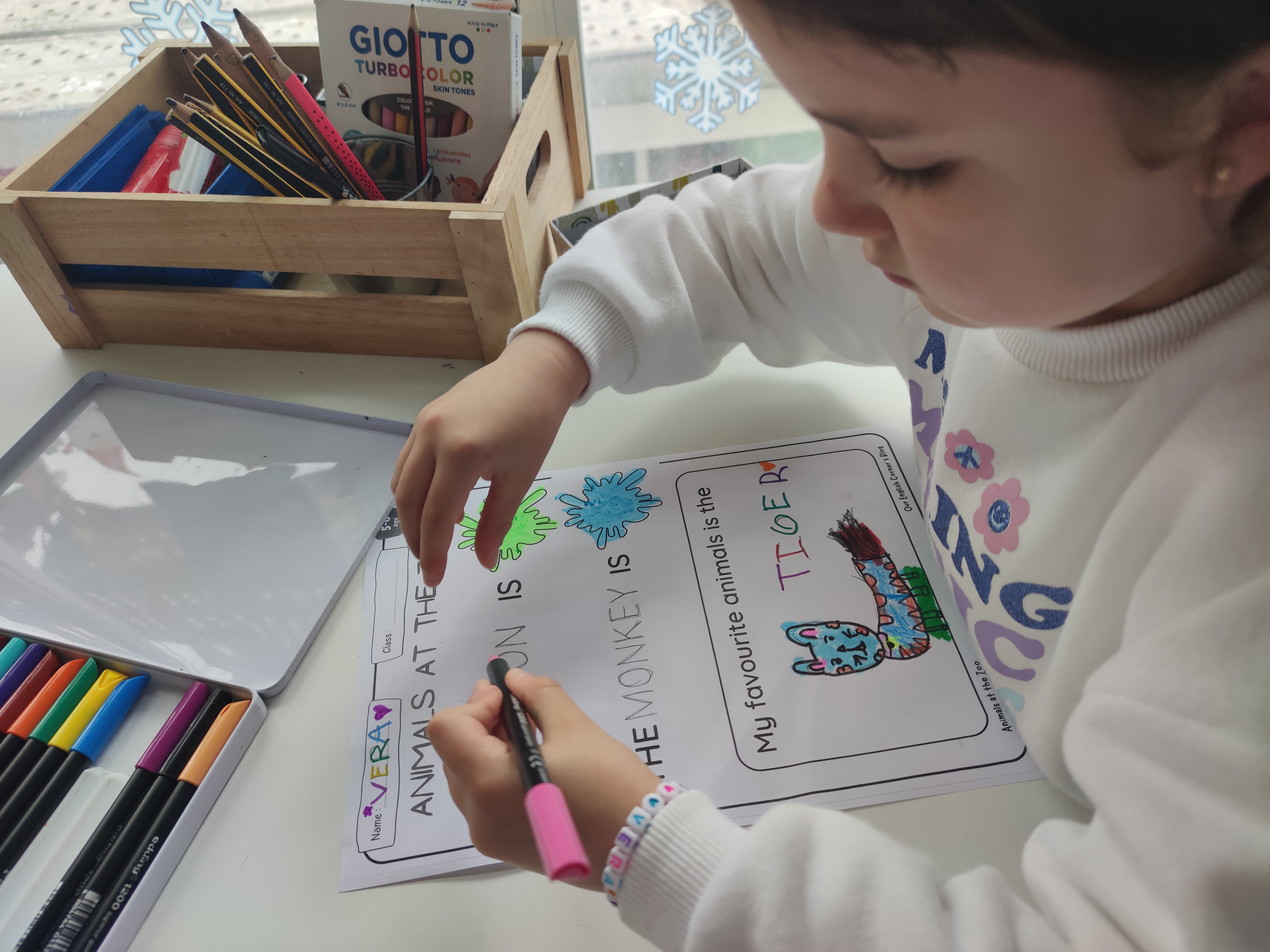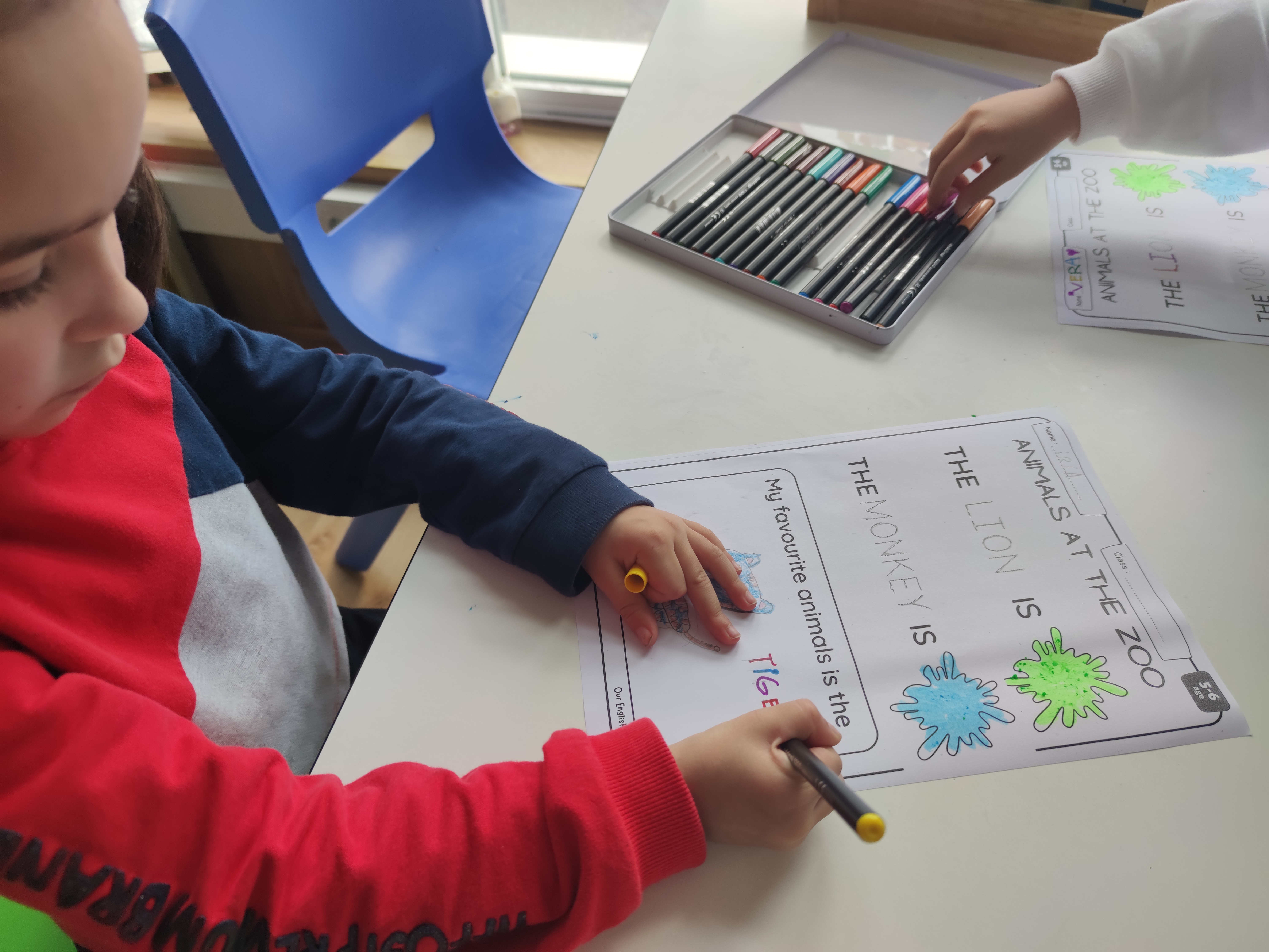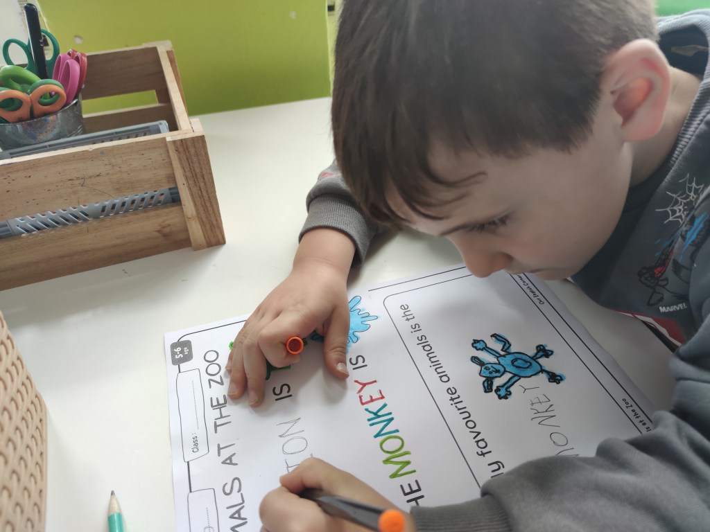 This story is perfect for reviewing colours and talking about our favourite animal at the zoo. After reading, kindergarteners enjoyed finding and colouring the animals on the story, solving secret messages and drawing their favourite animal. What’s yours?