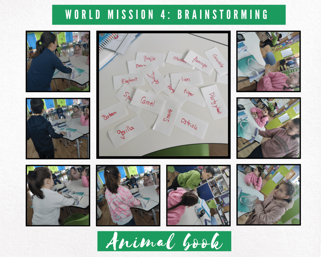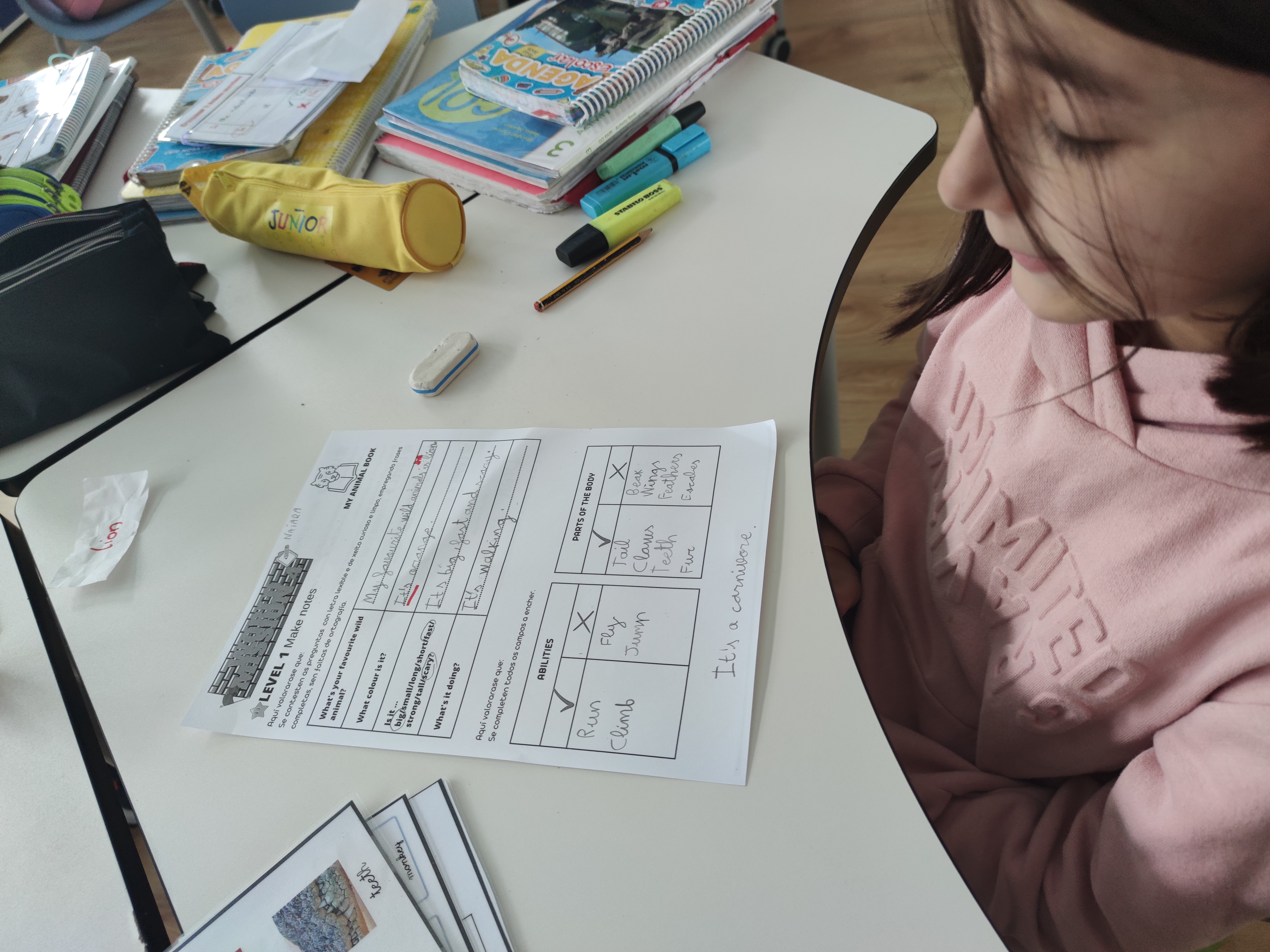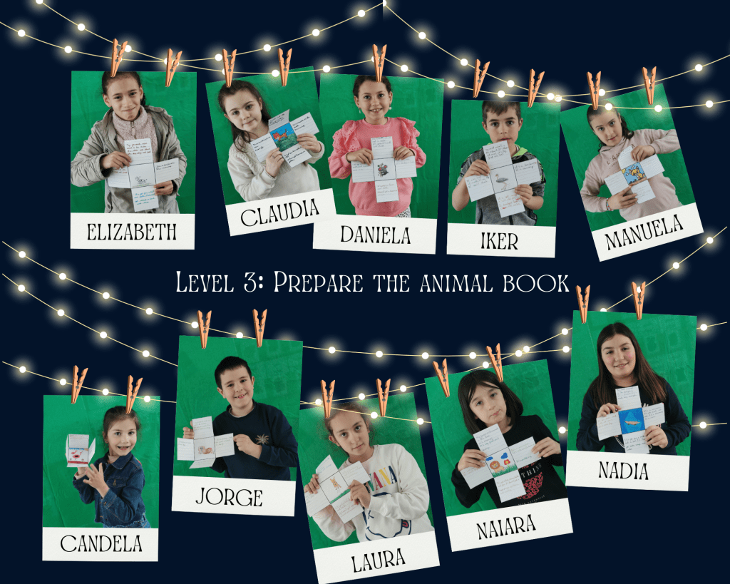 In this new mission, students in Level 3 had to write a book about a wild animal. In order to decide what animal they were going to write about, we wrote on some pieces of paper all the animals they were able to remember. Then, each child picked one paper.