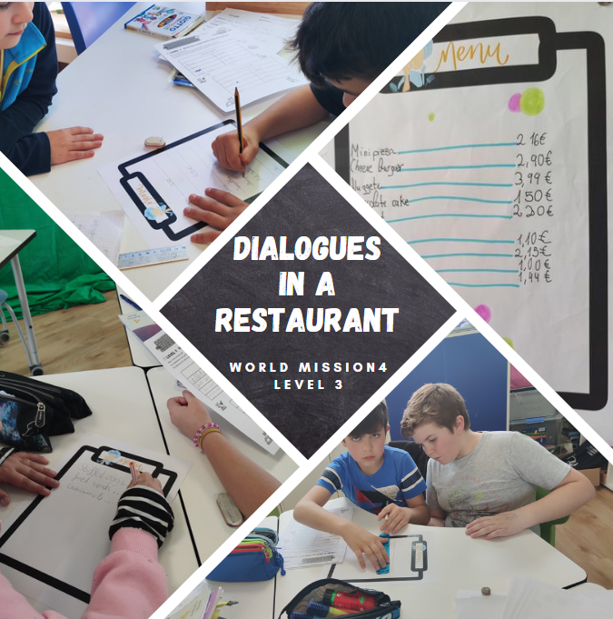 In this new mission, students in Level 4 had to write in pairs a short dialogue in a restaurant.