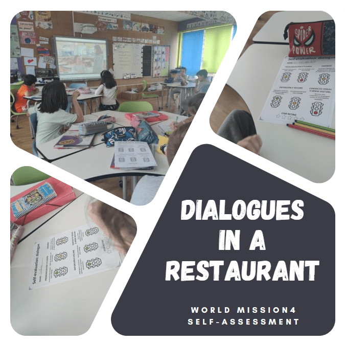 Nesta nova misión, os alumnos e alumnas de 4º traballaron en parellas para escribir un pequeno diálogo nun restaurante.