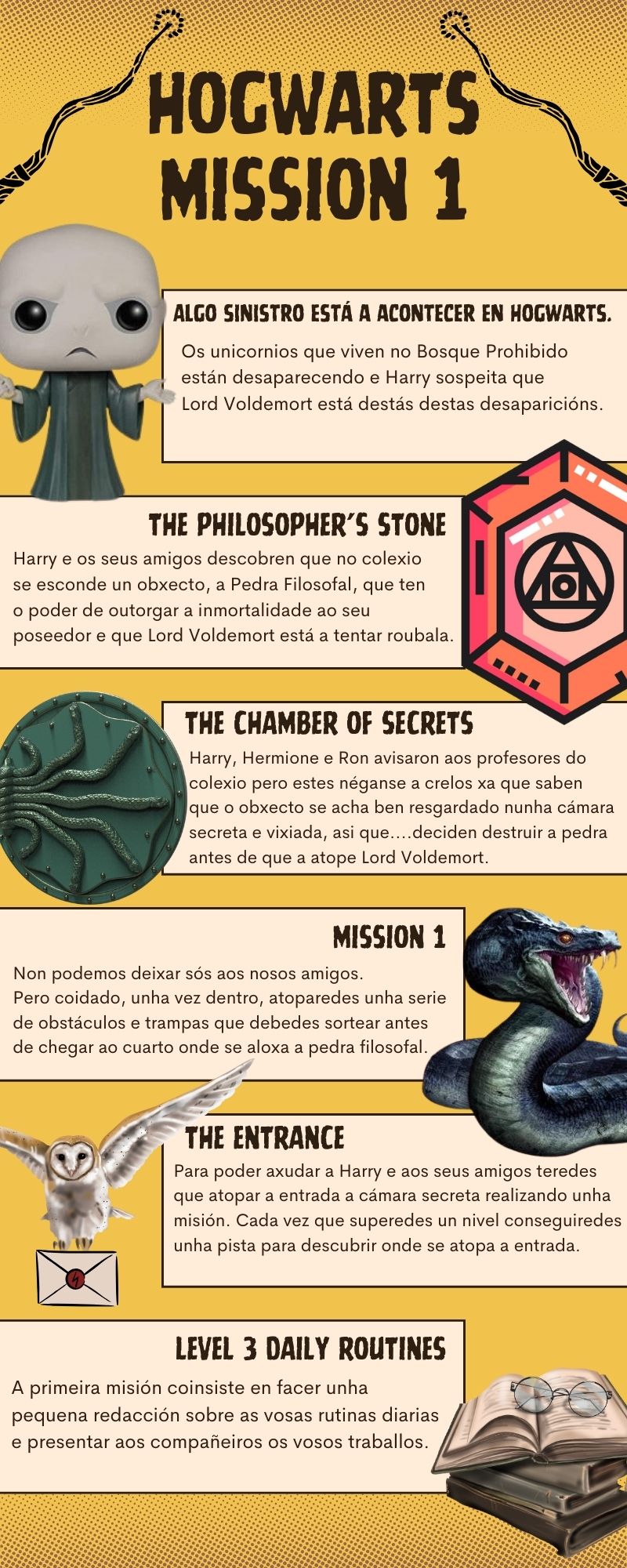 Hogwarts Mission 1 en 3º de Primaria está preparada. Despois de completar a misión, conseguiredes 5 moedas. Non é complicado pero debedes ler as instruccións con calma e superar todos os niveis. Preparados para axudar a Harry e aos seus amigo a atopar a entrada á Cámara dos Secretos?