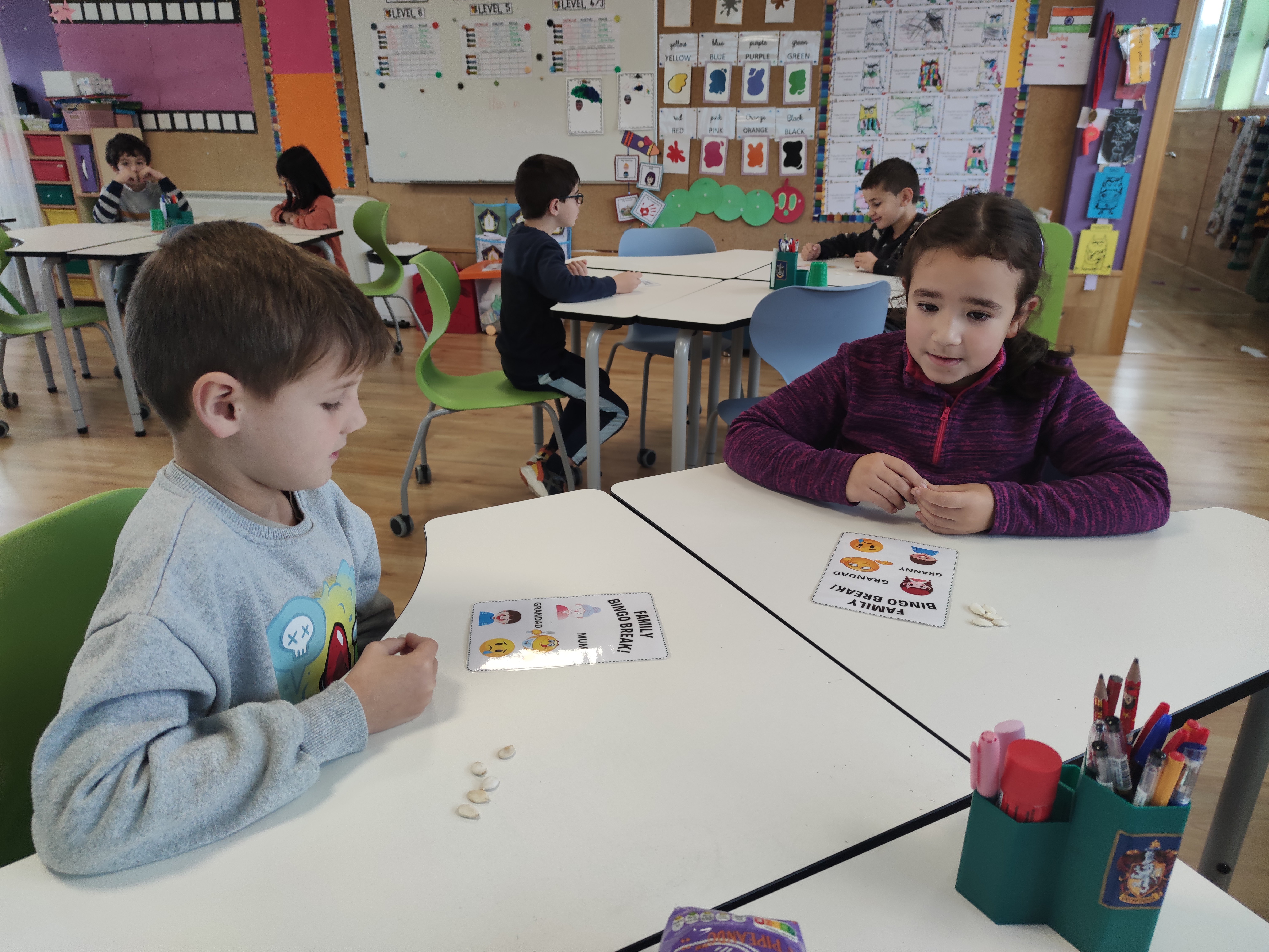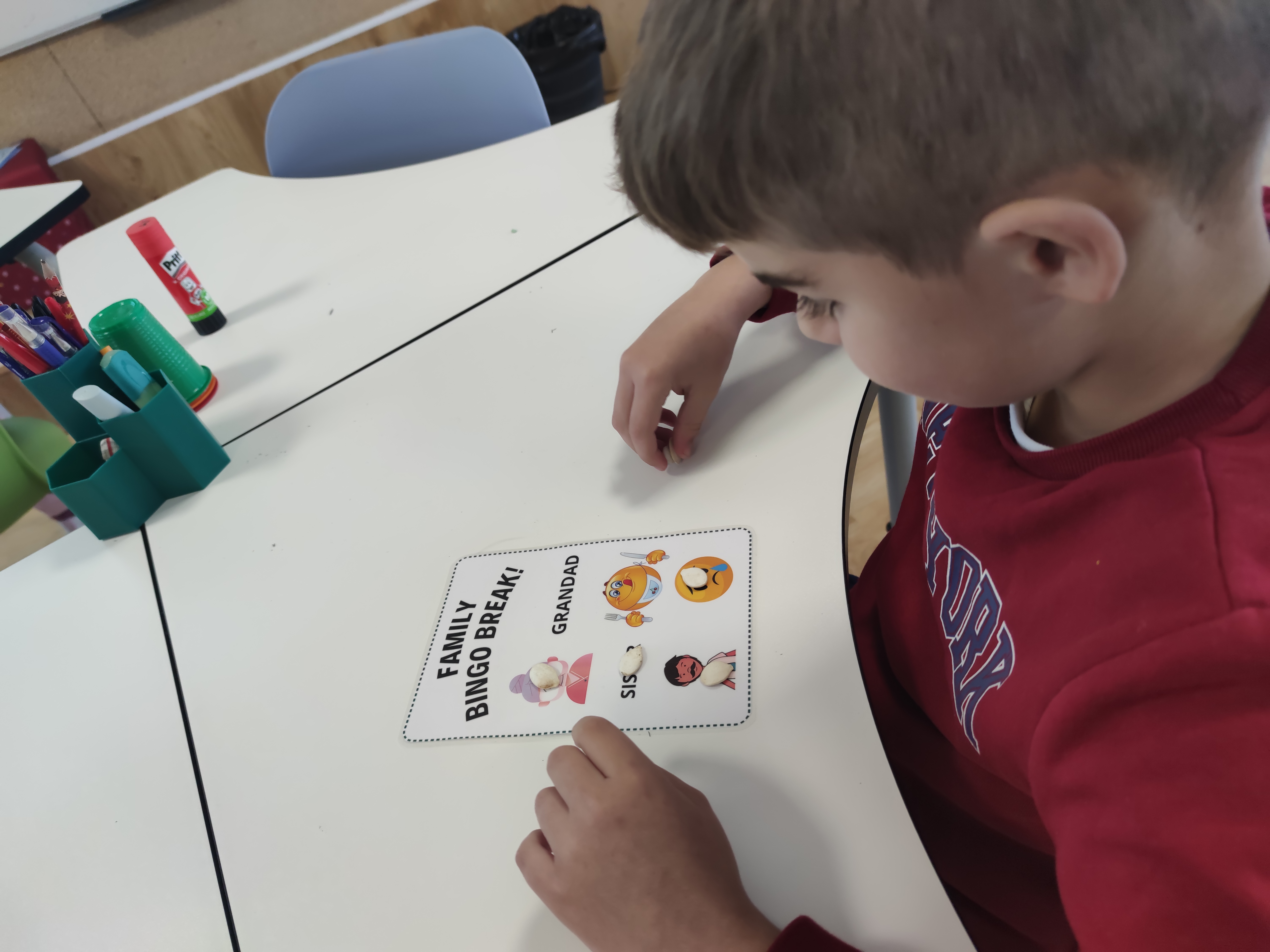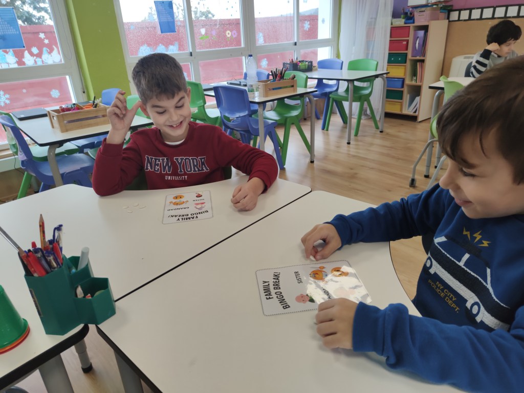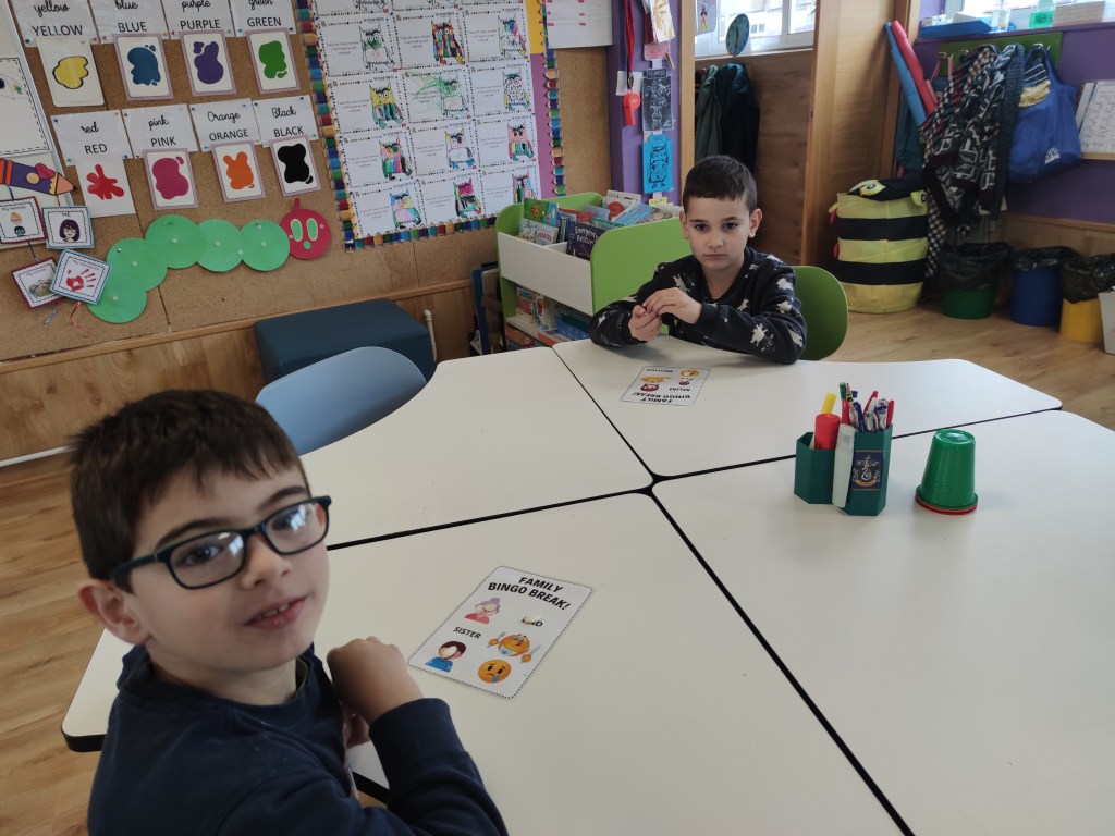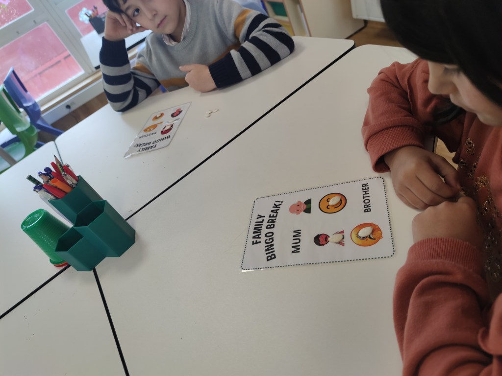You can use Bingo with all sorts of levels and topics. On this occasion, we have played a simple bingo , just saying the words related to family and feelings individually and using images and words.