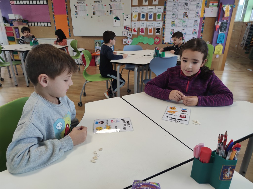 O Bingo pódese adaptar a todos os niveis e temáticas. Nesta ocasión, xogamos cun Bingo “simple”, dicindo palabras relacionadas coa familia e os sentimentos e empregando imaxes e a forma escrita.