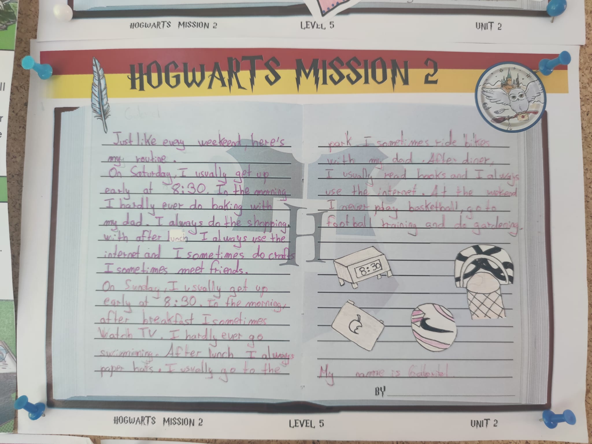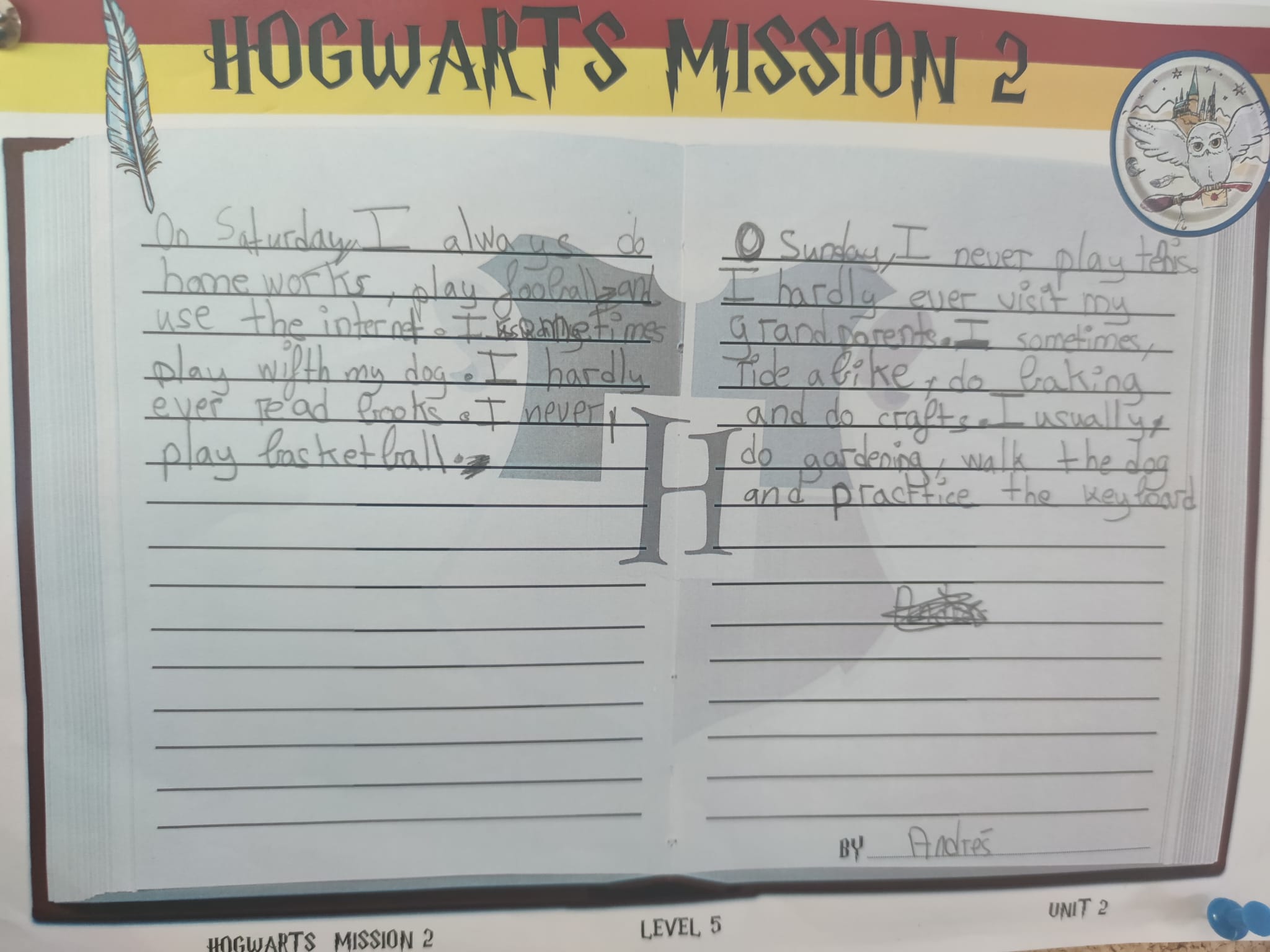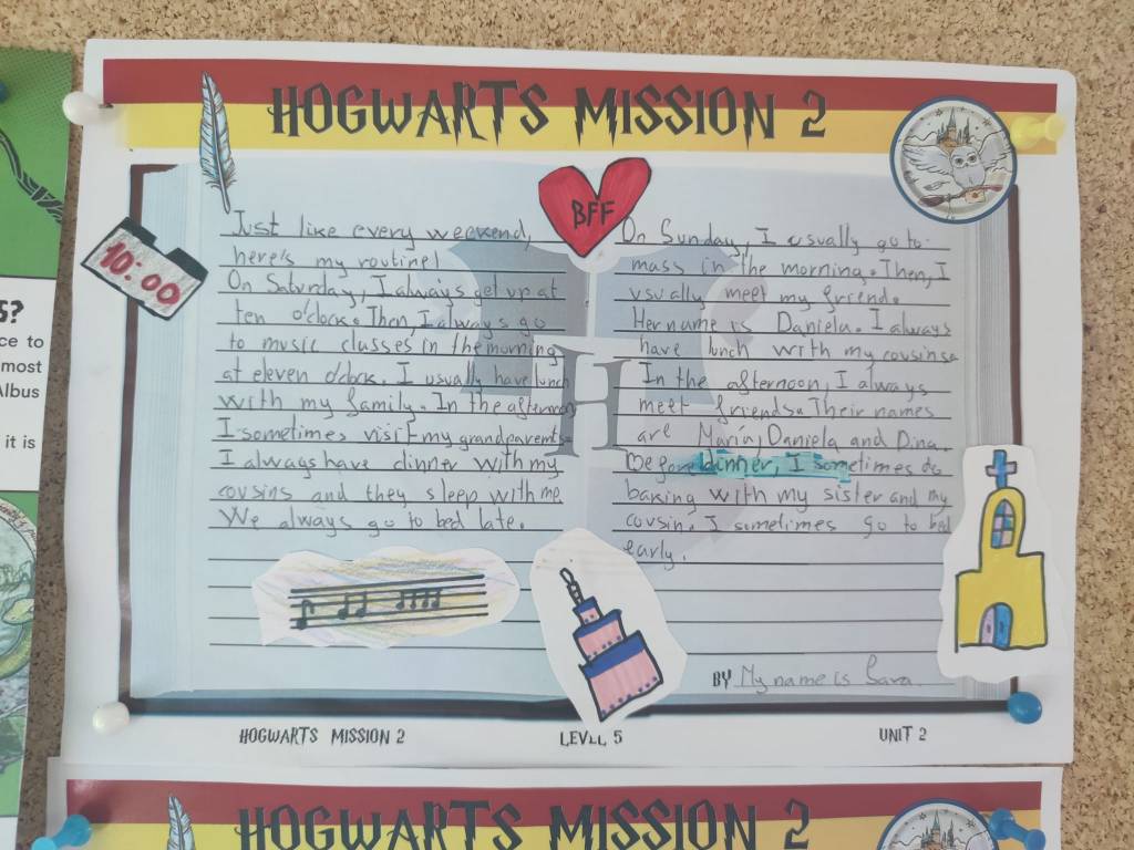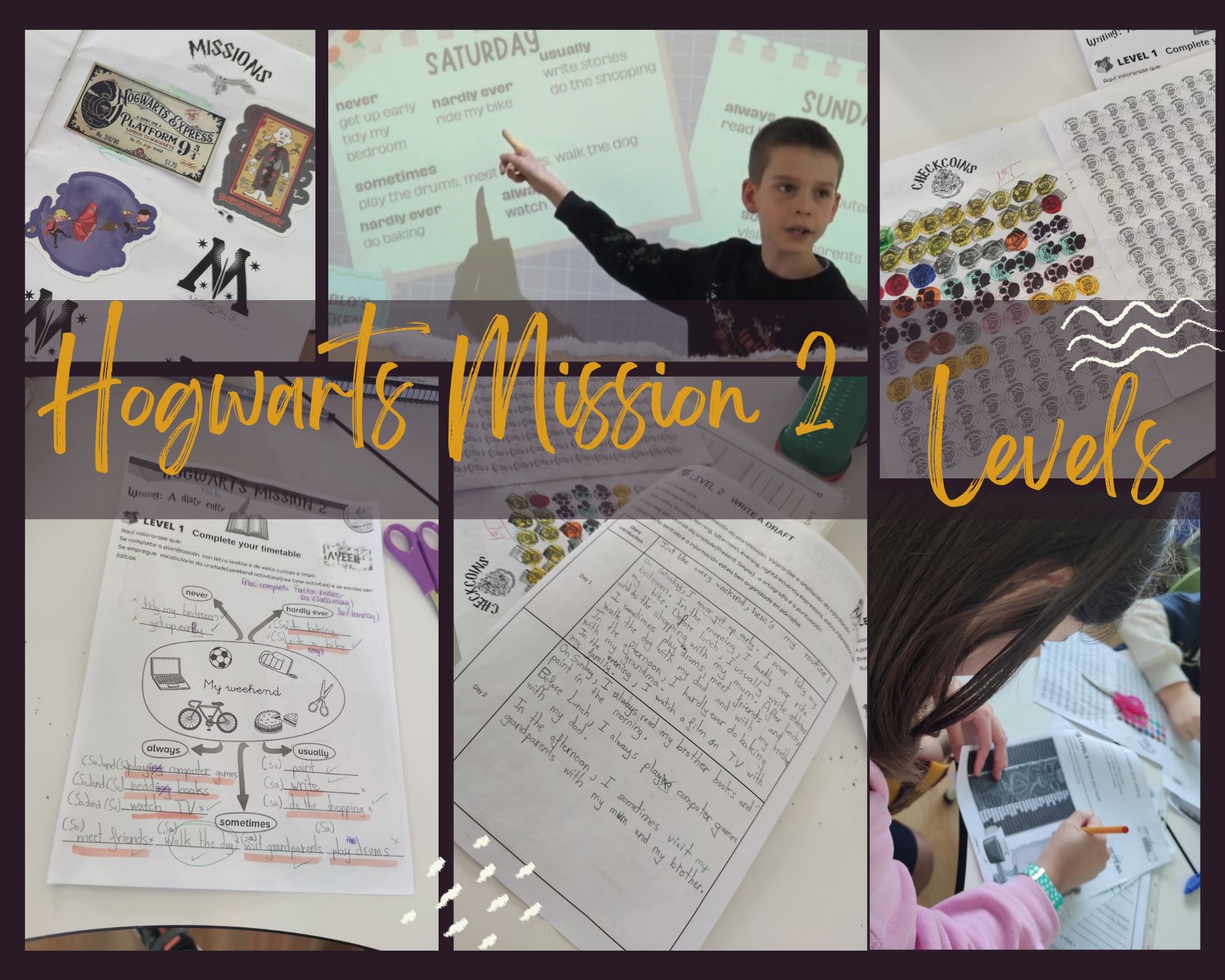 Para conseguir superar a misión, tiveron que pasar estas catro fases: completar a planificación, escribir un borrador, preparar a entrada do diario e presentar o traballo. Cada vez que acadaban un nivel, conseguían unha letra da palabra que necesitarían para abrir a cámara.