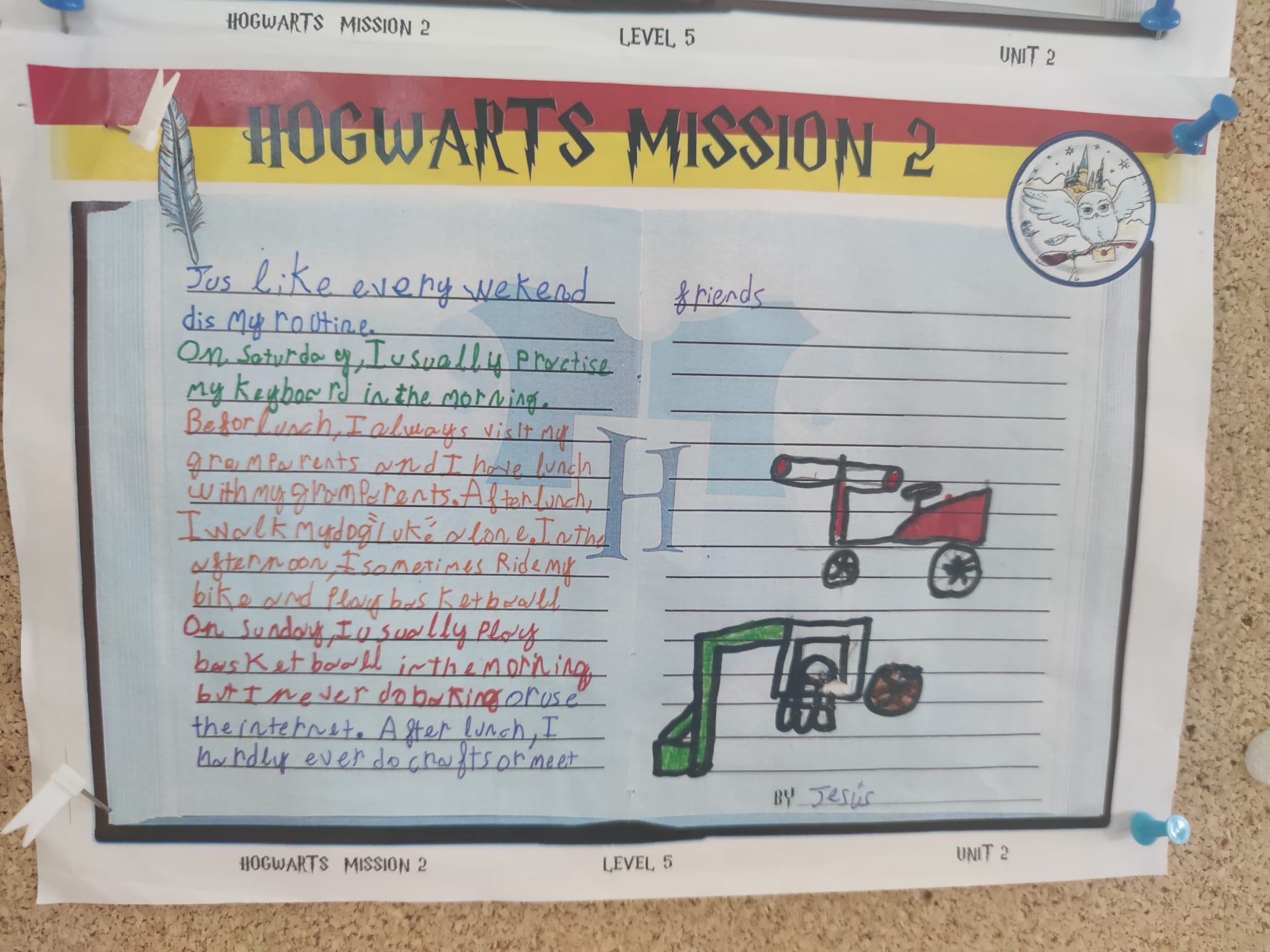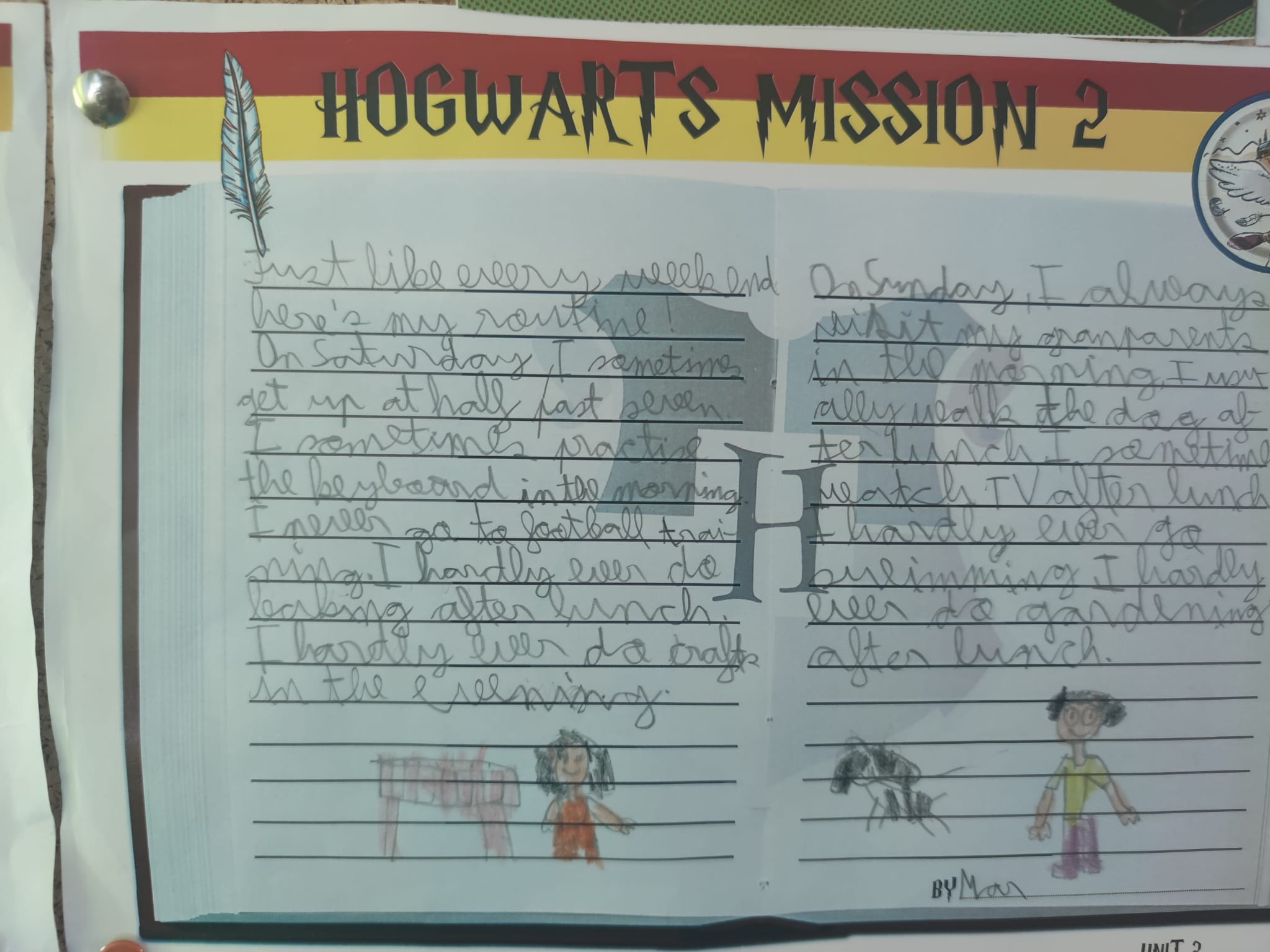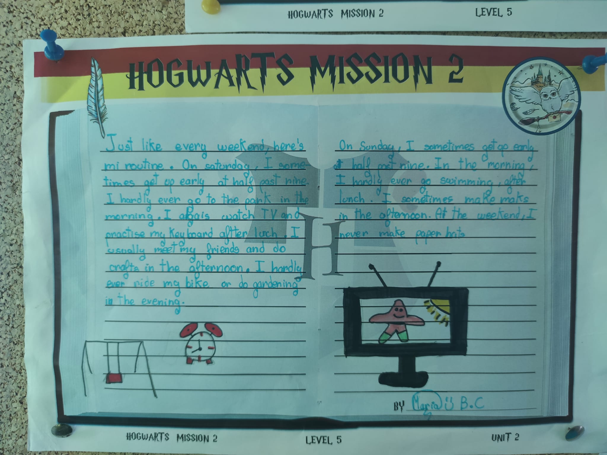 Para conseguir superar a misión, tiveron que pasar estas catro fases: completar a planificación, escribir un borrador, preparar a entrada do diario e presentar o traballo. Cada vez que acadaban un nivel, conseguían unha letra da palabra que necesitarían para abrir a cámara.