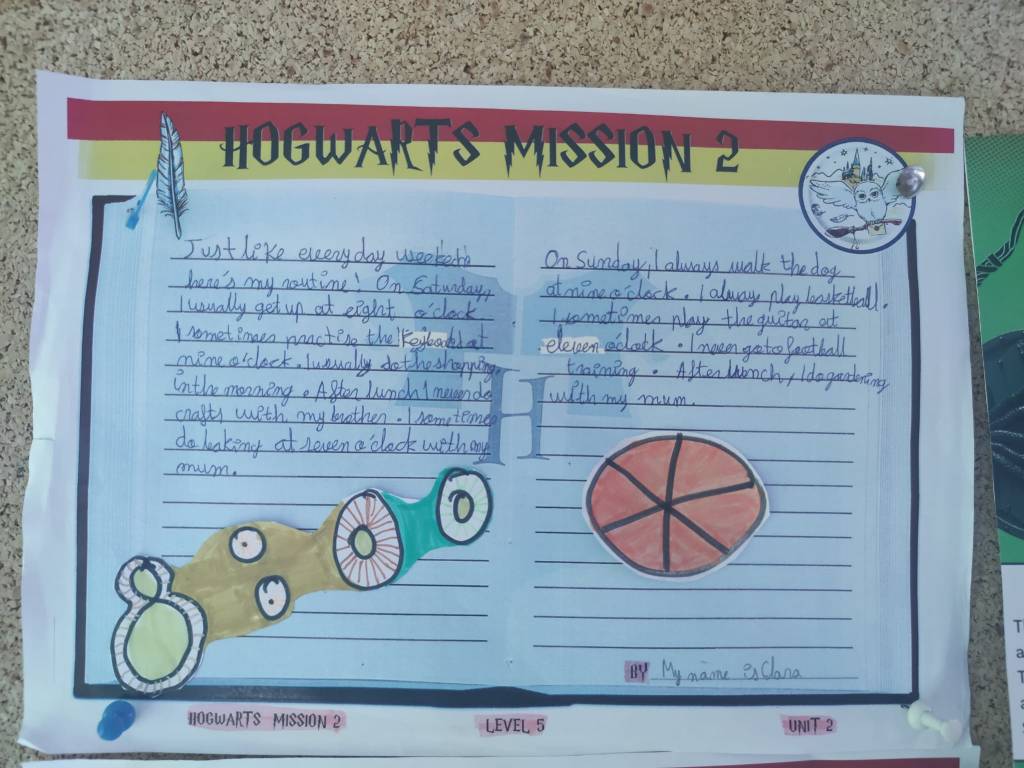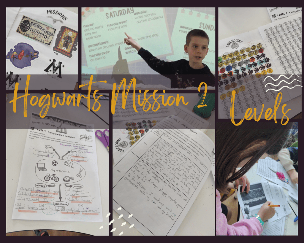 They organized the task following four steps: complete the planning, write the draft, prepare the writing and give an oral presentation. Each time they passed a level, they got a letter of the word that would allow them to access the inside of the chamber.