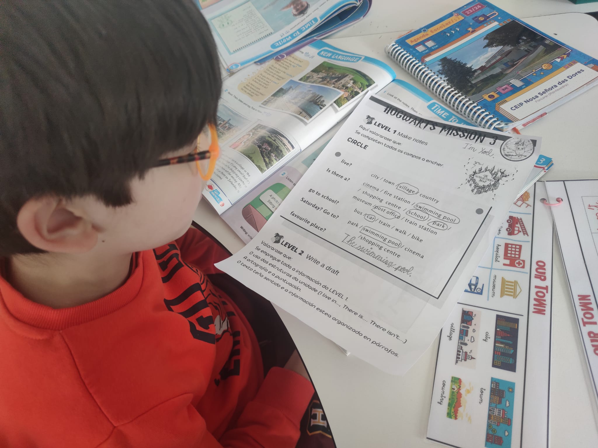 Level 3: Prepare the writing and the model village.