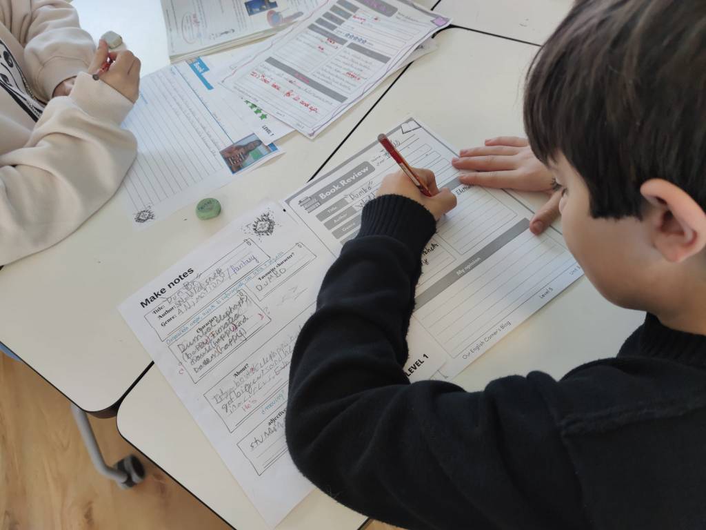 Then, children took notes about the plot, the author and genre,the important characters, the ideal age and their opinion, and wrote a draft.