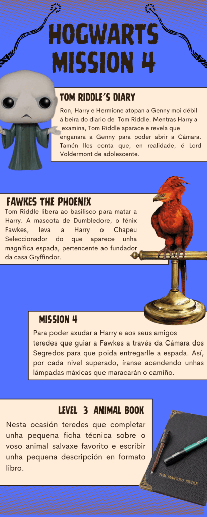 In this new mission, students had to guide Fawkes through the Chamber of Secrets so that he could deliver the sword to Harry. Thus, for each level passed, some magical lamps lighted up to mark the way.
