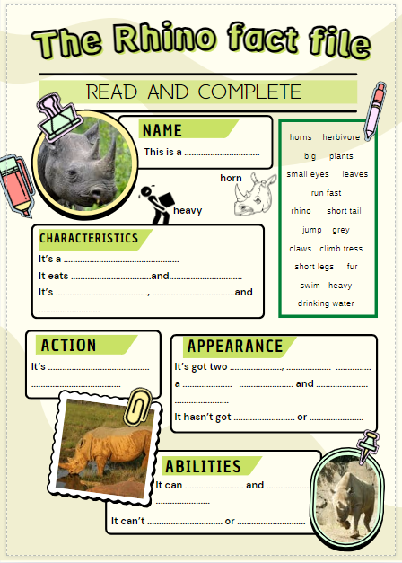 1st Level: Make notes about the animal, finding out information from books, internet, TV, family, teachers,…