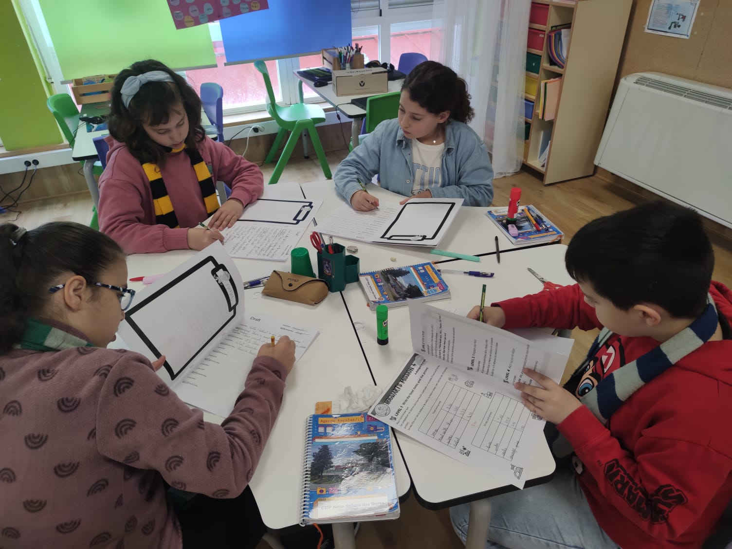 Despois, coa información planificada no nivel anterior, decidiron que rol ía ter cada un e escribiron un diálogo seguindo unhas pautas previas.
