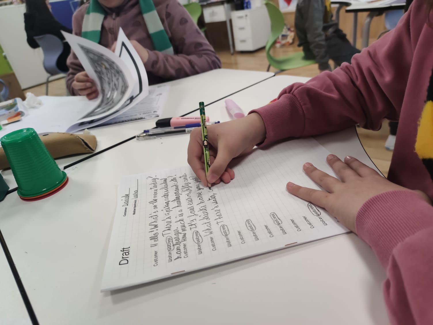 In this new mission, students in Level 4 had to write in pairs a short dialogue in a restaurant.