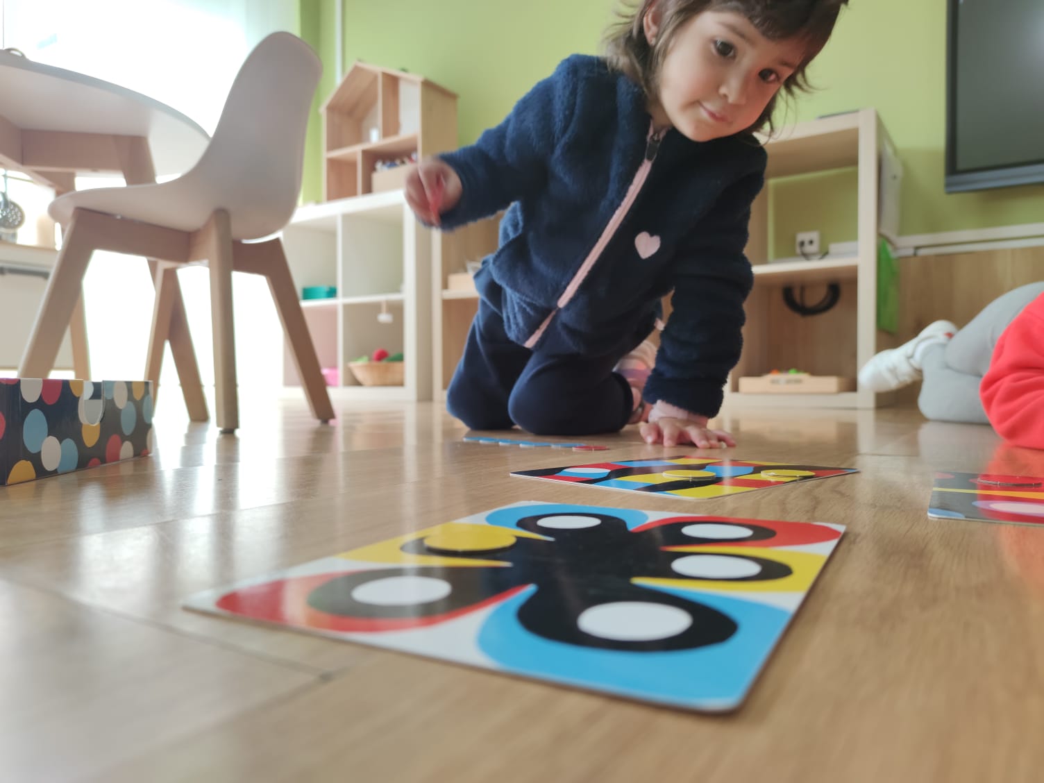 Children love practicing different actions with each turn of the page and seeing how each action transforms the yellow dot. Furthermore, they can practice colours, numbers or sizes in English as well as stimulate children’s attencion and develop logical and reasoning skills.