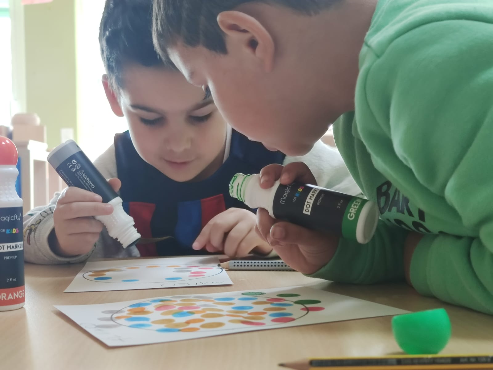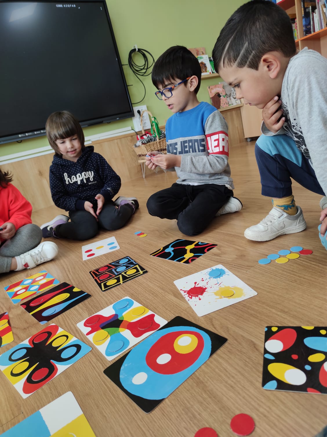 After reading the book,we played with the Press Here Game. Children had to take turns completing colour sequences by placing red, blue, and yellow playing pieces on one of twenty-five fabulously designed game boards.