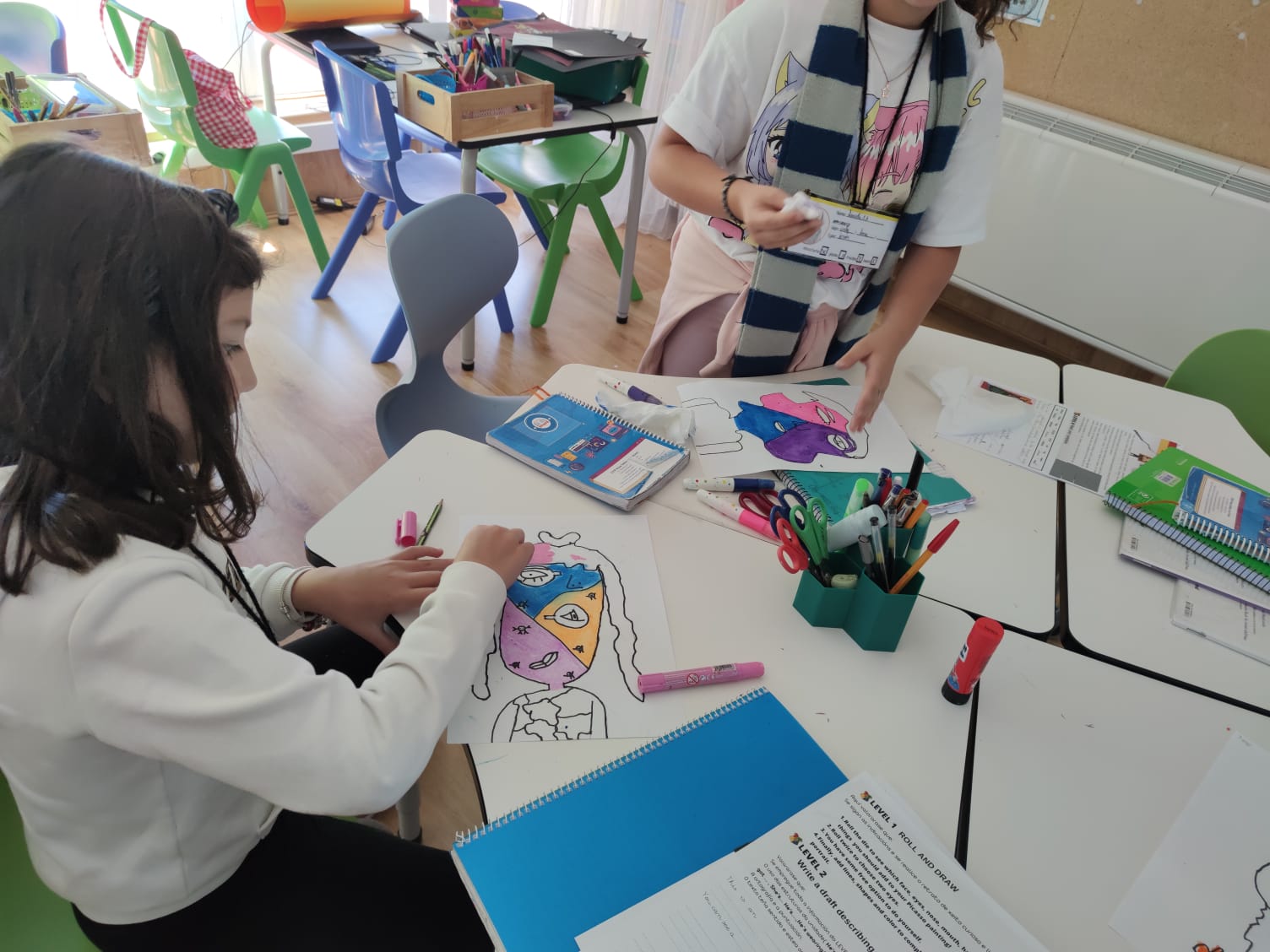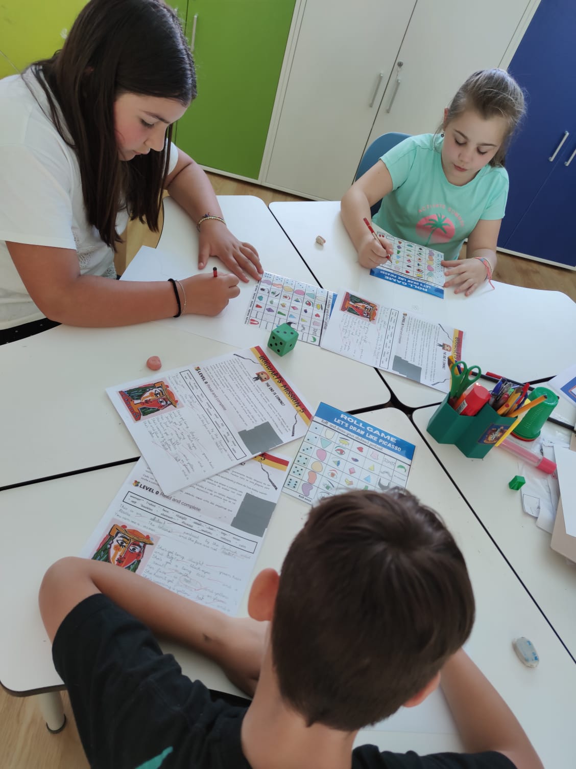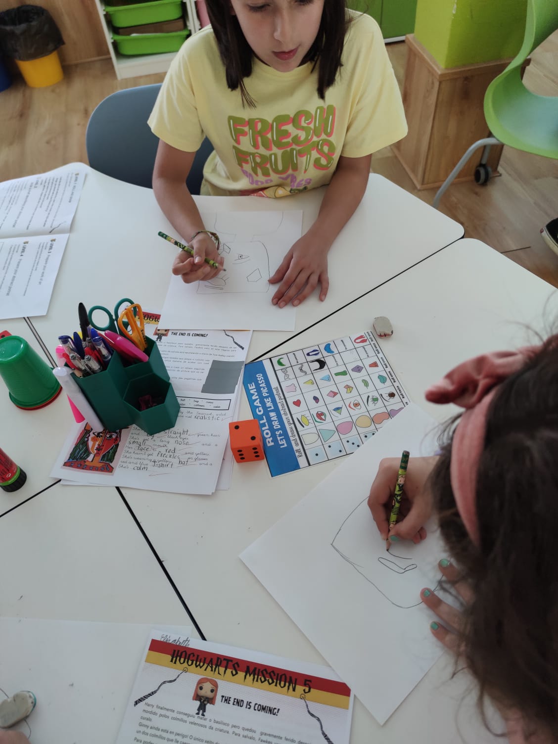 In this last mission, students learnt about different types of portraits, such as self-portraits, abstract portraits or profile portraits. They discovered the artworks of some famous artists like Picasso, Sargent or Renoir and compared their painting styles. They were impressed with the Picasso’s abstract portraits so they decided to imitate his portraits.Their portraits were so stunning that we organized an abstract portrait exhibition.