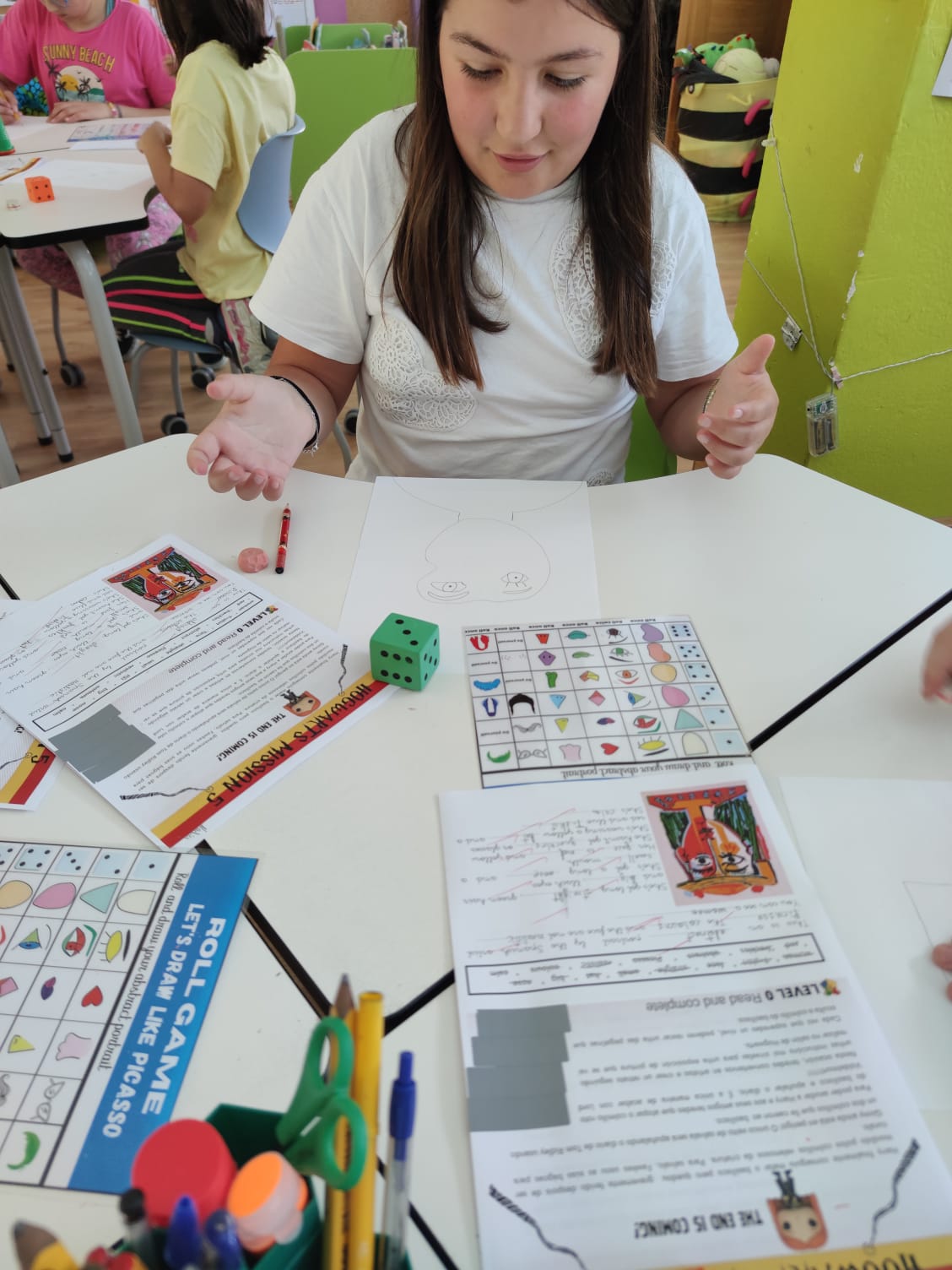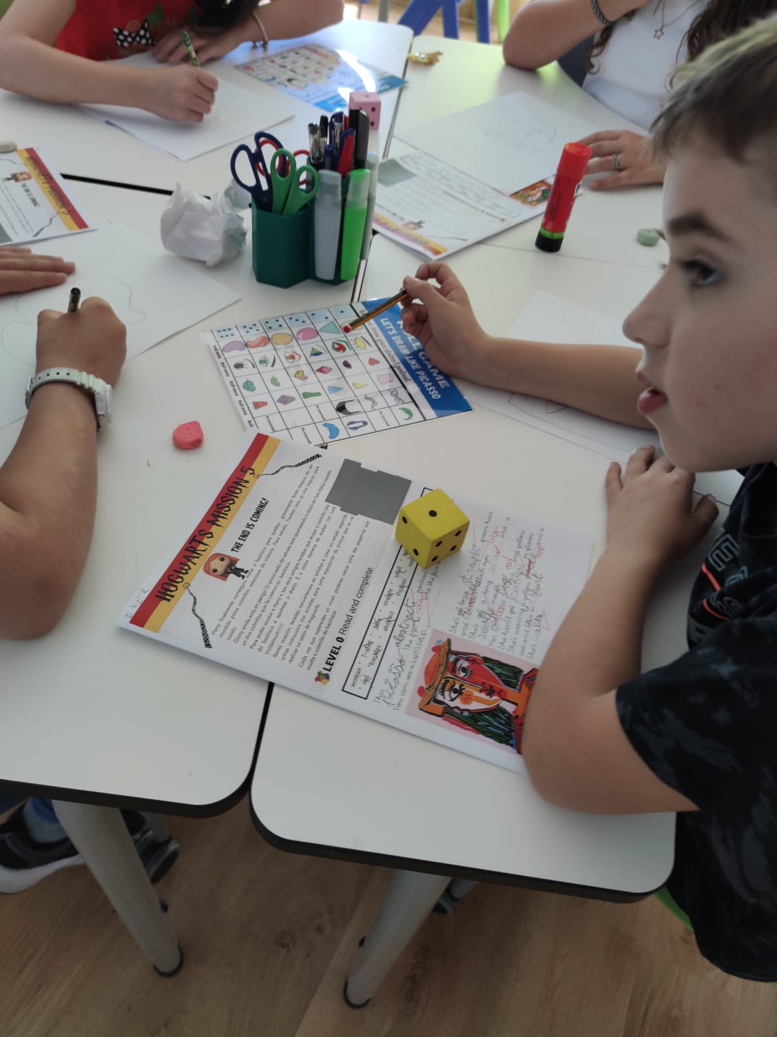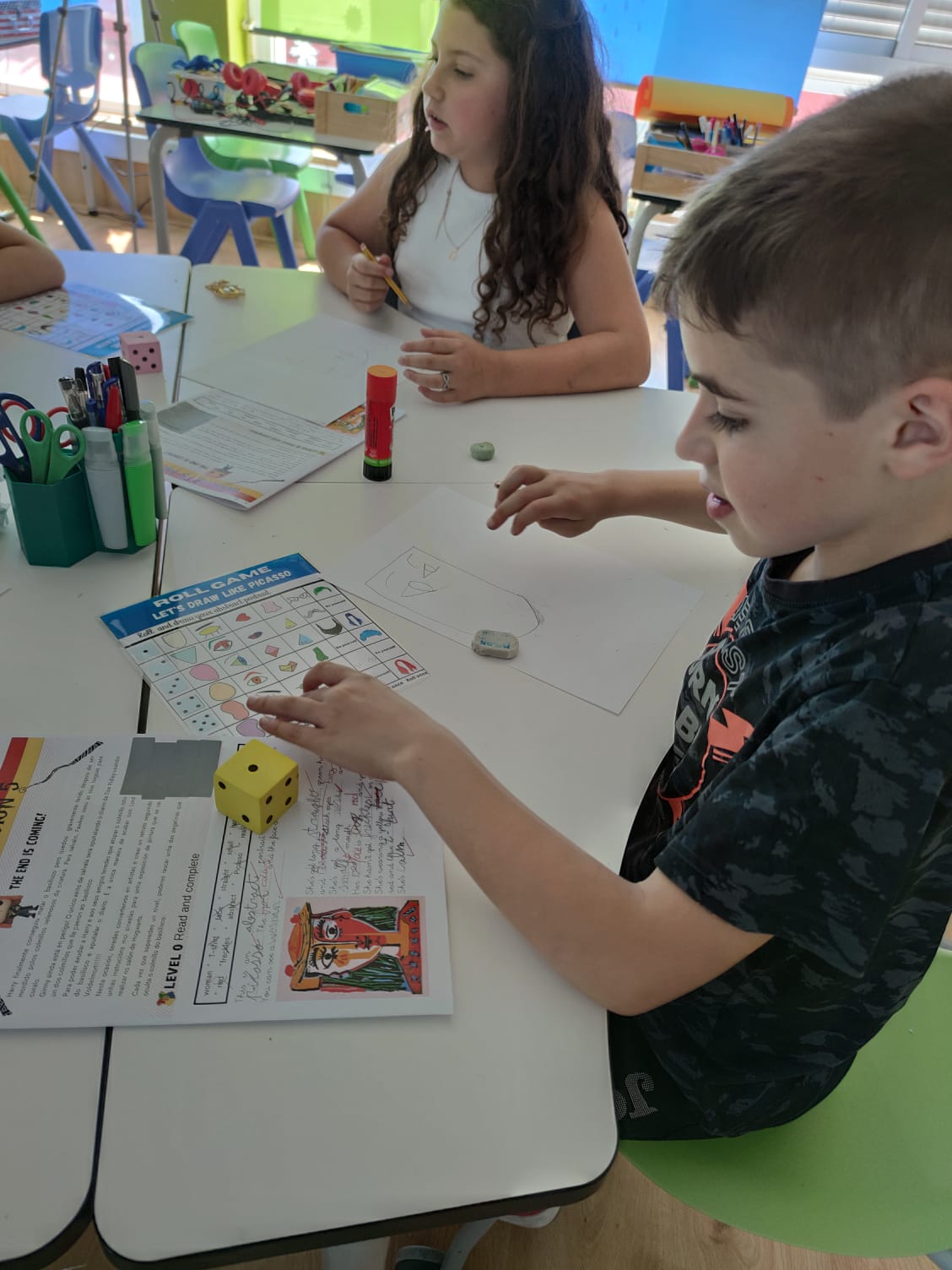In this last mission, students learnt about different types of portraits, such as self-portraits, abstract portraits or profile portraits. They discovered the artworks of some famous artists like Picasso, Sargent or Renoir and compared their painting styles. They were impressed with the Picasso’s abstract portraits so they decided to imitate his portraits.Their portraits were so stunning that we organized an abstract portrait exhibition.