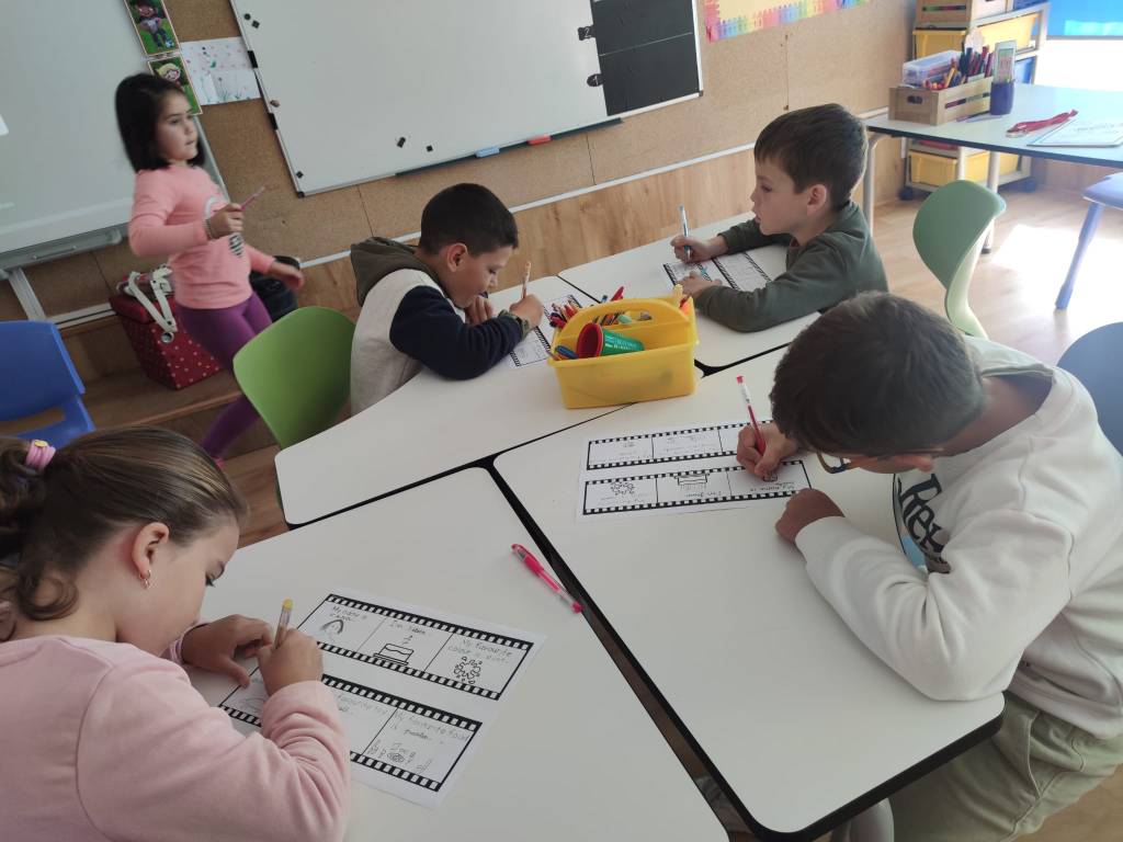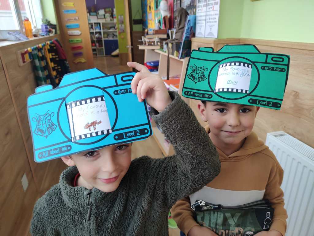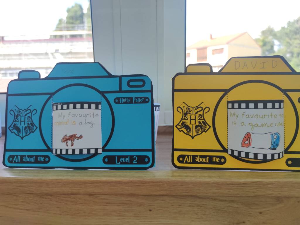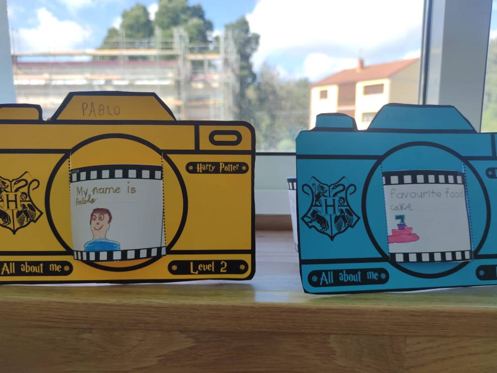 O proxecto central, All About Me, consistiu nunha manualidade na que cada estudante deseñou a súa propia “cámara fotográfica.” Dentro da cámara, os nenos crearon un “carrete fotográfico” que se desenrola e no cal engadiron diferentes datos persoais. En cada “fotograma” do carrete, os estudantes incluíron información como o seu nome, idade, cor favorita, …….. Cada imaxe representaba un aspecto único da súa personalidade. Este formato creativo permitiulles aos estudantes presentarse de maneira visual e oral, practicando inglés e conectando cos seus compañeiros a través dos seus intereses e gustos.