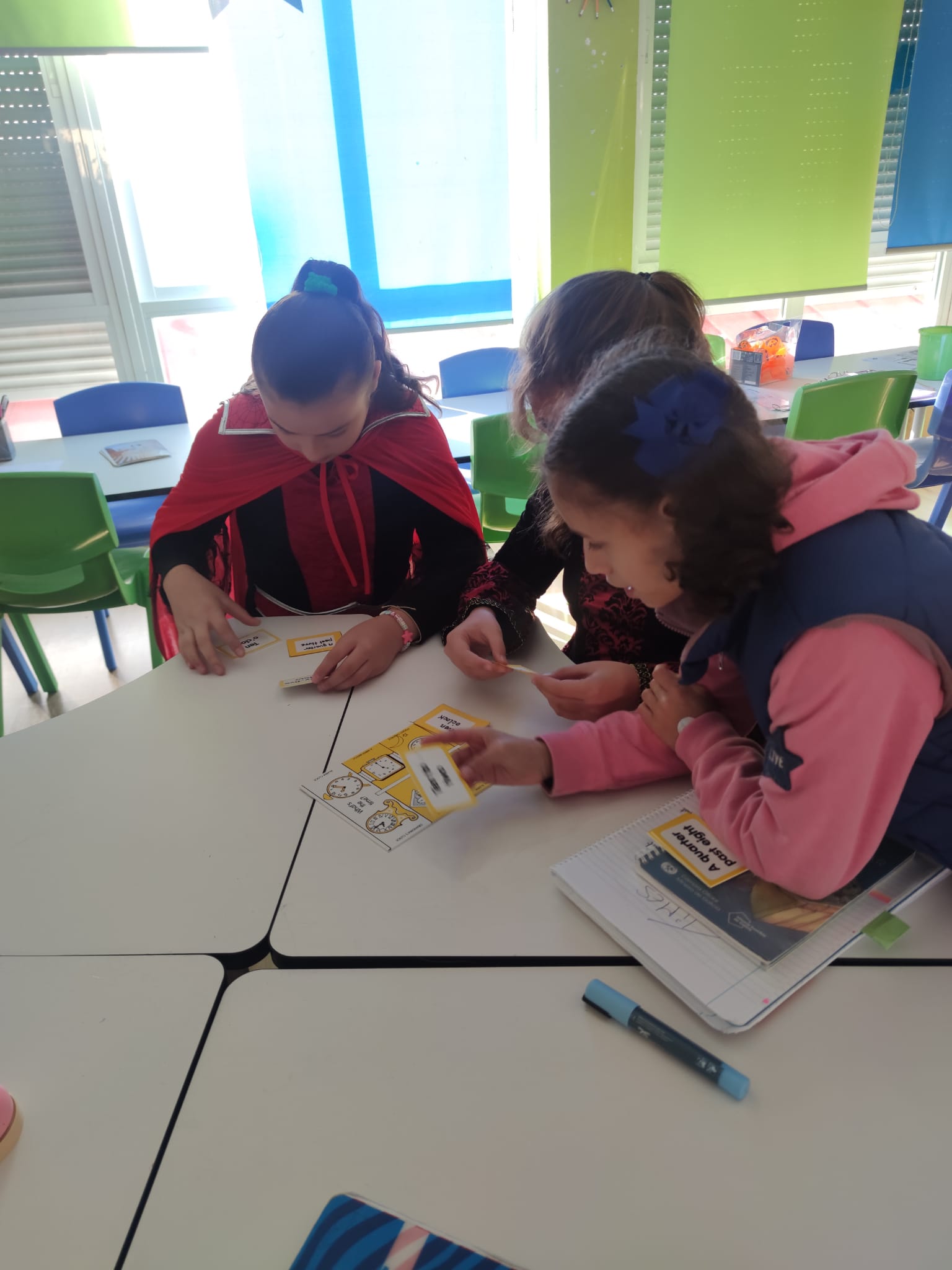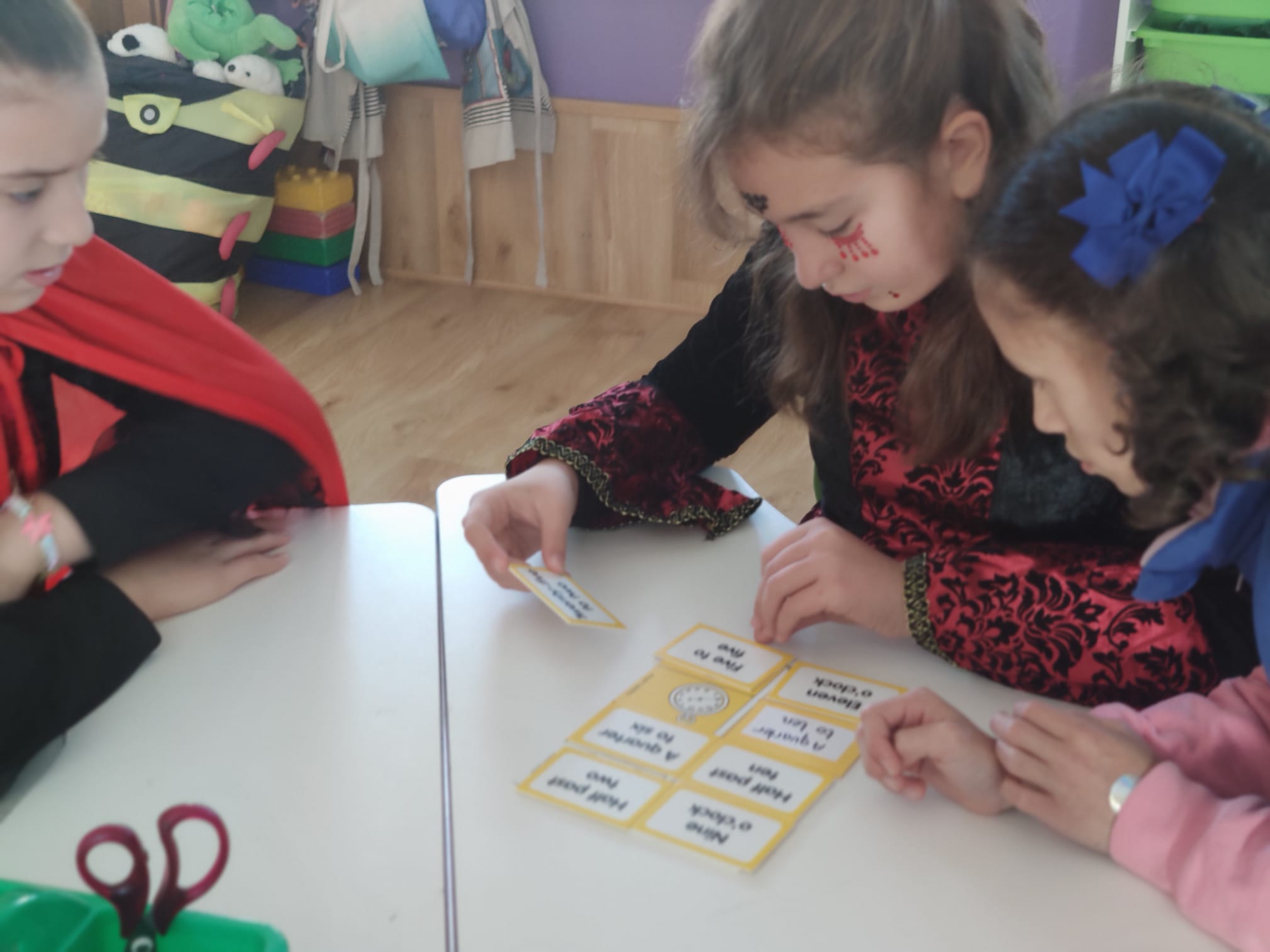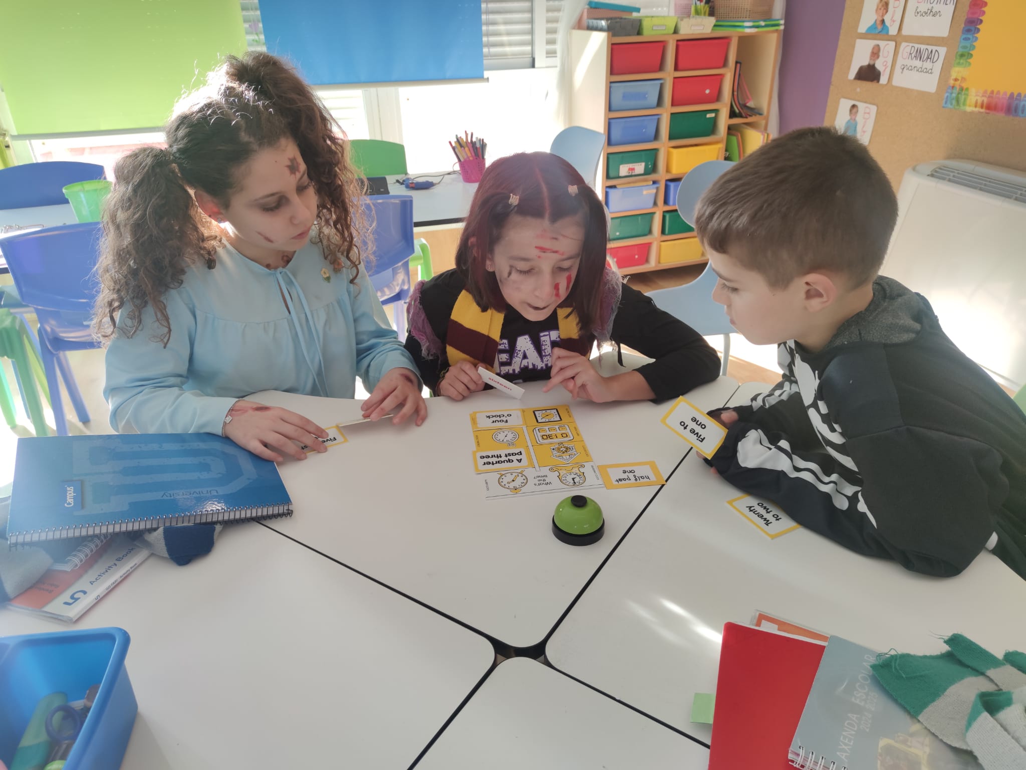 Esta semana, na nosa clase de inglés, atopamos un xogo tradicional antigo perfecto para aprender a dicir as horas en inglés! Escondido na aula, descubrimos unha actividade que combina habilidades de asociación, traballo en equipo e diversión, axudando aos alumnos a practicar a lectura de reloxos analóxicos e dixitais.