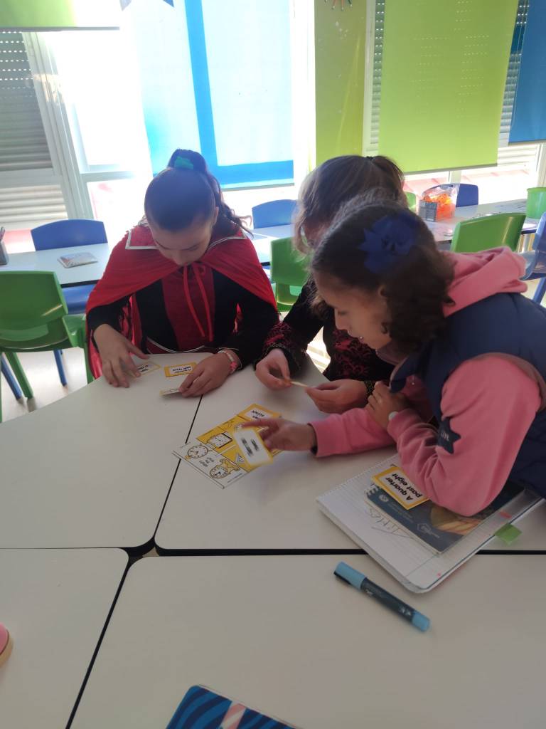 O xogo era sinxelo pero emocionante: cada grupo recibiu un conxunto de tarxetas con imaxes de reloxos (analóxicos e dixitais) xunto con outras tarxetas que mostraban as horas escritas. O reto consistía en emparellar correctamente as tarxetascos reloxos no menor tempo posible. Os estudantes formaron equipos e foron rotando polas distintas estacións para emparellar os reloxos coas horas escritas. O equipo que máis parellas completou no menor tempo foi o gañador!