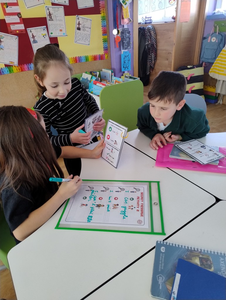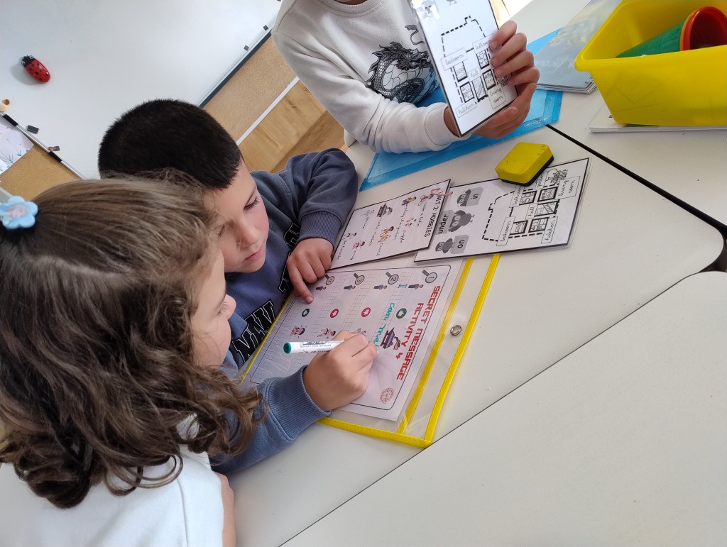 We had to use a decoding key to figure out the sentences. Everyone in the group shared ideas and worked together to crack the code. It felt like being real detectives!