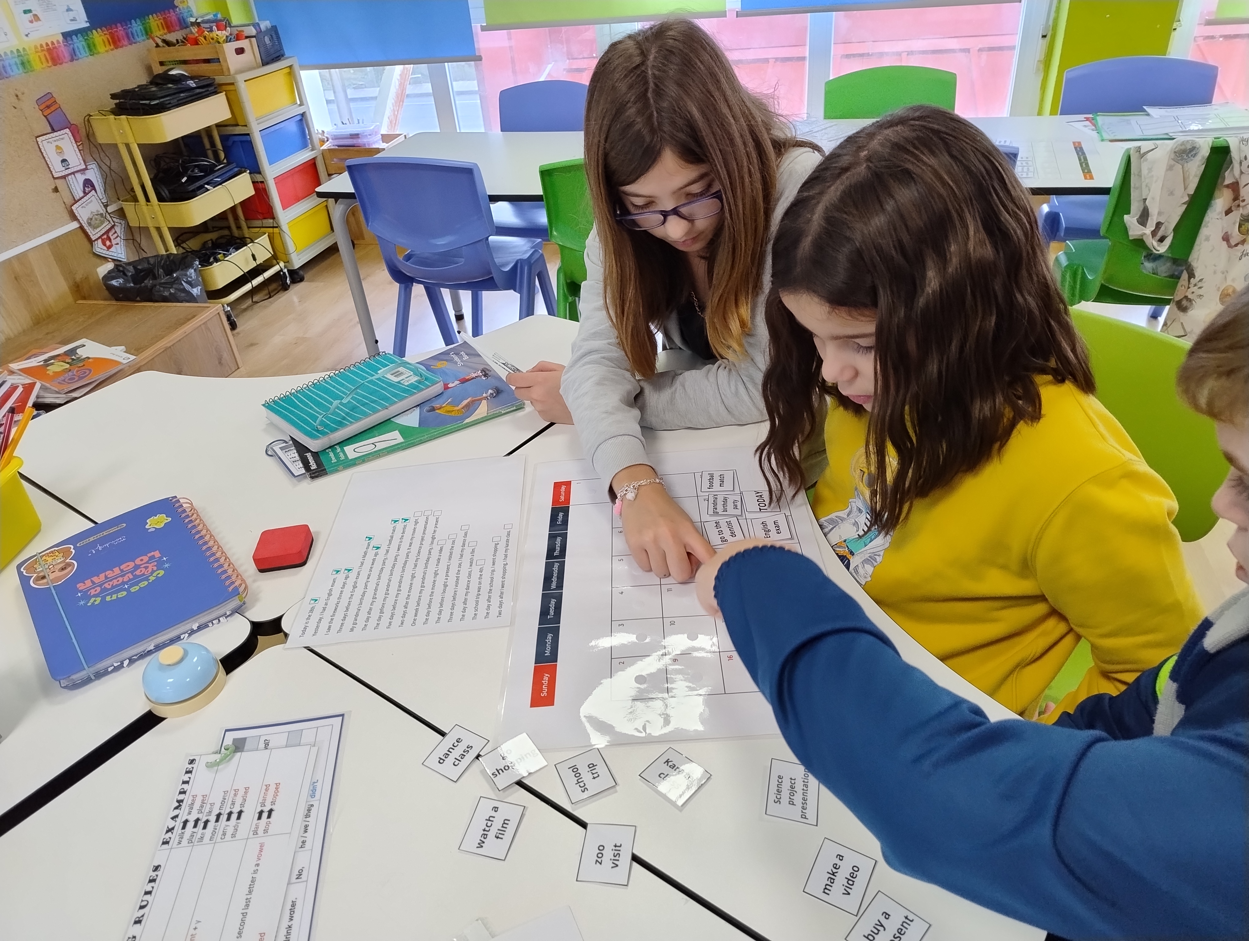 In our 6th-grade English class, we did a fun and simple activity to practice the past simple tense of regular and irregular verbs. We also learned how to use time expressions like “ago,” “after,” “before,” and “yesterday.” This activity was exciting and helped us learn together as a team.The Activity: The Collaborative Calendar Challenge