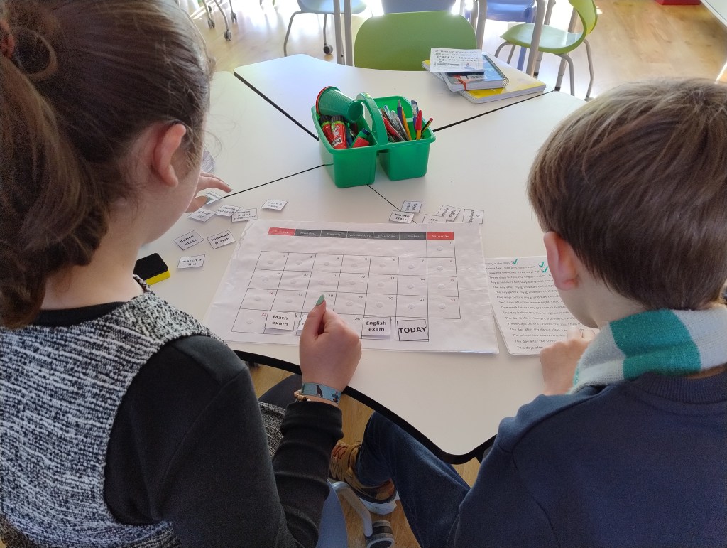 Group Quiz: Each group was asked a question, such as “Which activity happened three weeks ago?” They had to find the correct answer using the calendar. If they were wrong, the next group got a chance to answer. Groups earned extra points for their Hogwarts houses by answering correctly.