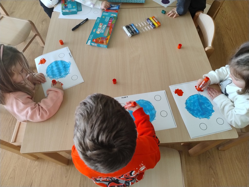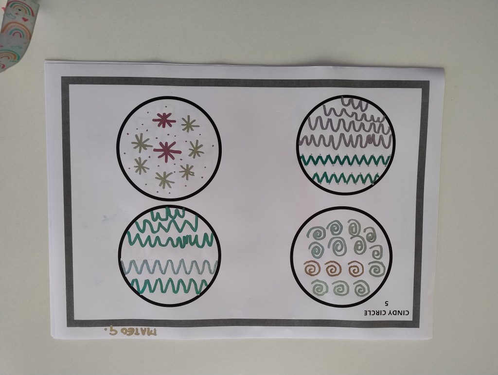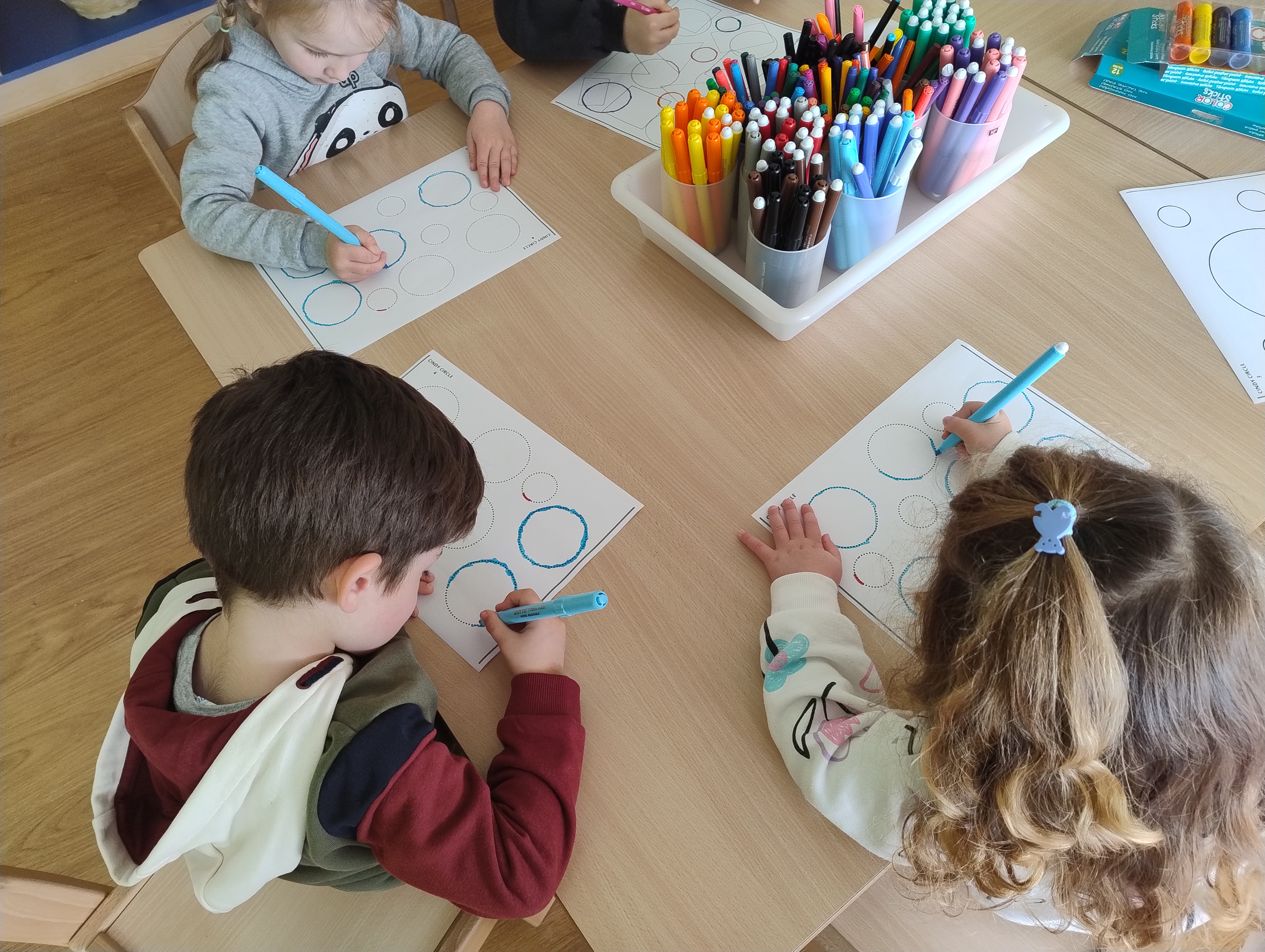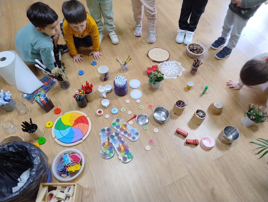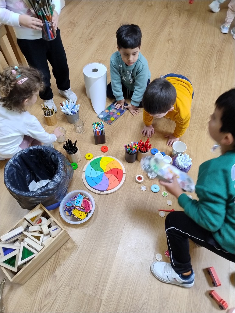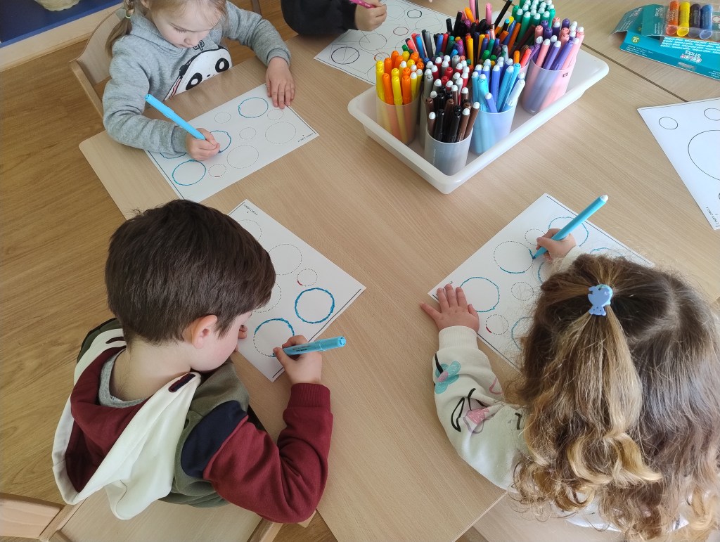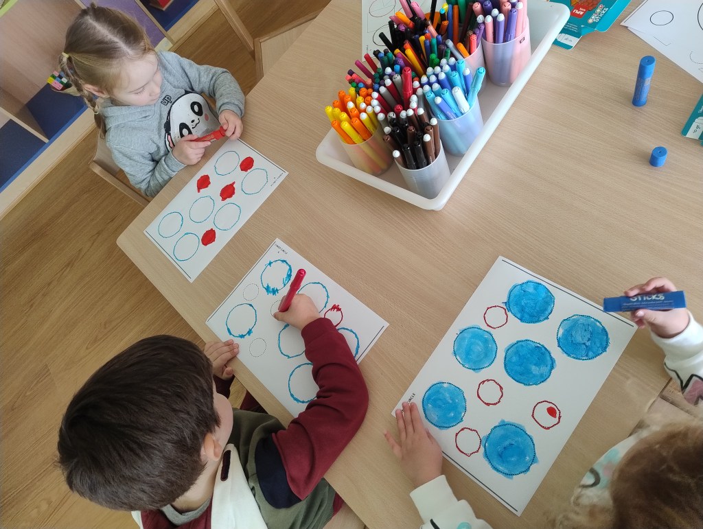 - Creación de mural de círculos: Os nenos decoran un mural grande con círculos de varios tamaños e cores. Esta actividade colaborativa fomenta a creatividade e o traballo en equipo.