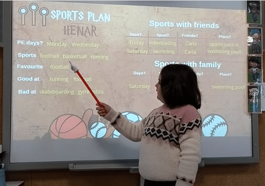 - Planificación: Primeiro, falamos todos xuntos para entender o que debíamos facer. Fixemos unha actividade divertida para ver exemplos e obter ideas. Isto axudounos a entender como escribir sobre o deporte e a reflexión.