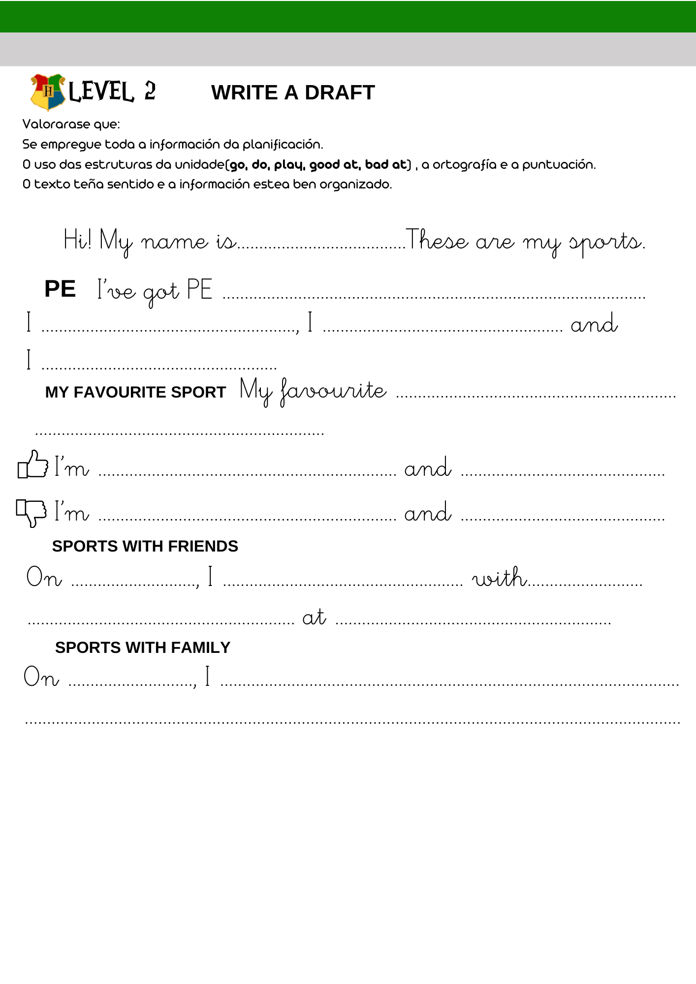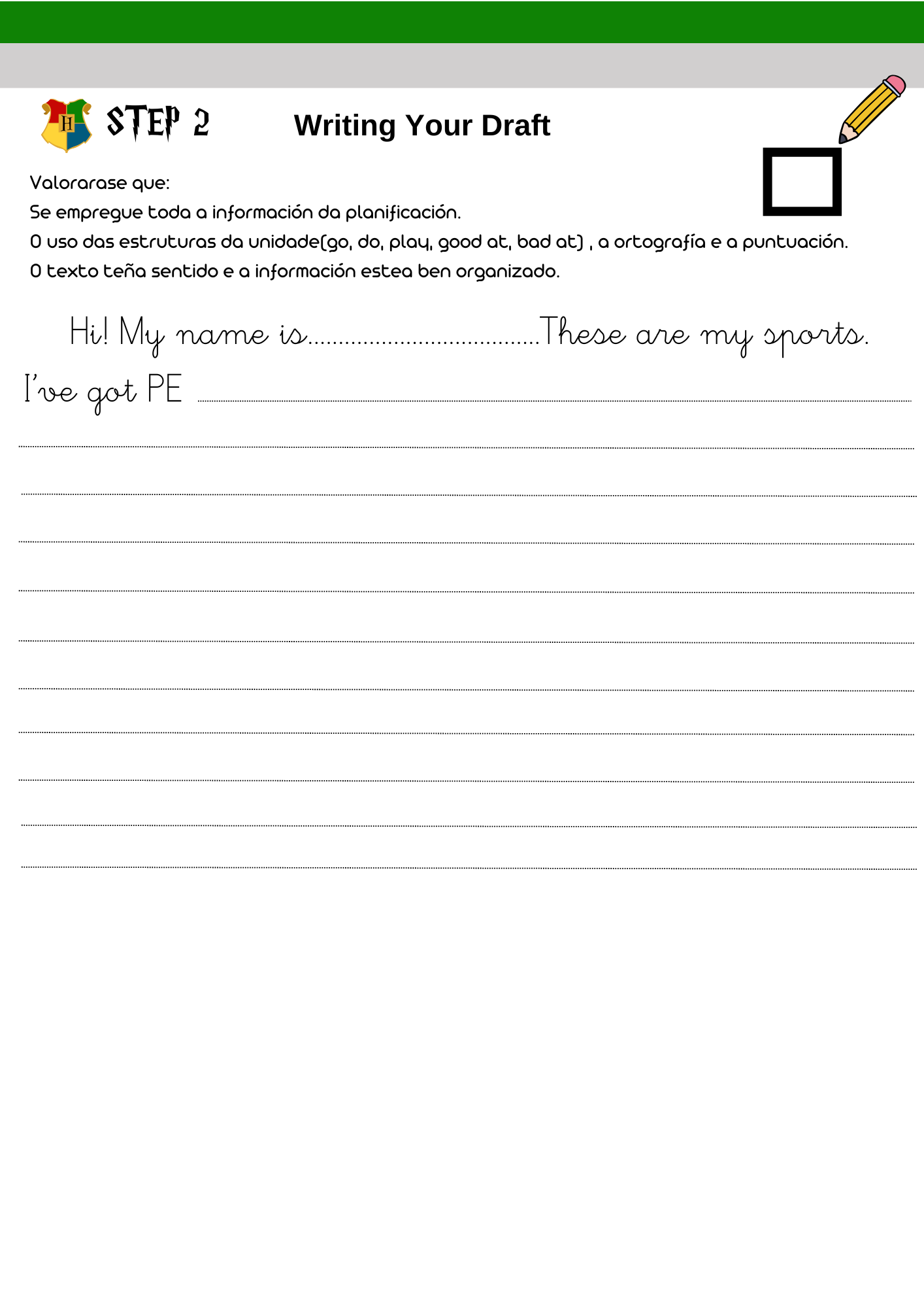 - Borrador: A continuación, escribimos un borrador do Diario do Valor. Describimos os deportes que practicamos, pensaron sobre no que somos bos e no que debemos mellorar.