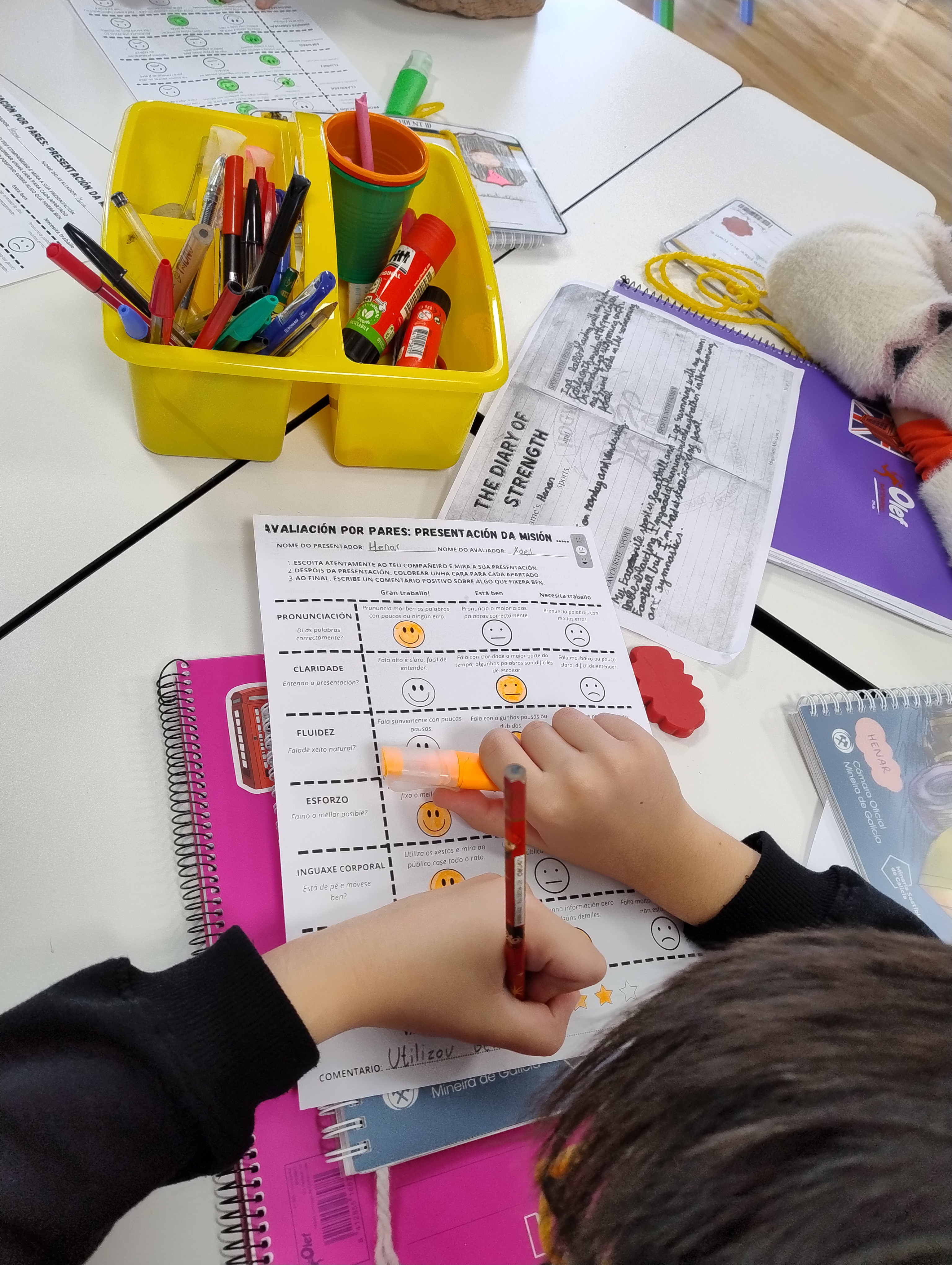 - Presentación: Finalmente, compartimos os nosos diarios coa clase entera. Todos fixeron un traballo marabilloso falando en inglés e compartindo as súas reflexións!