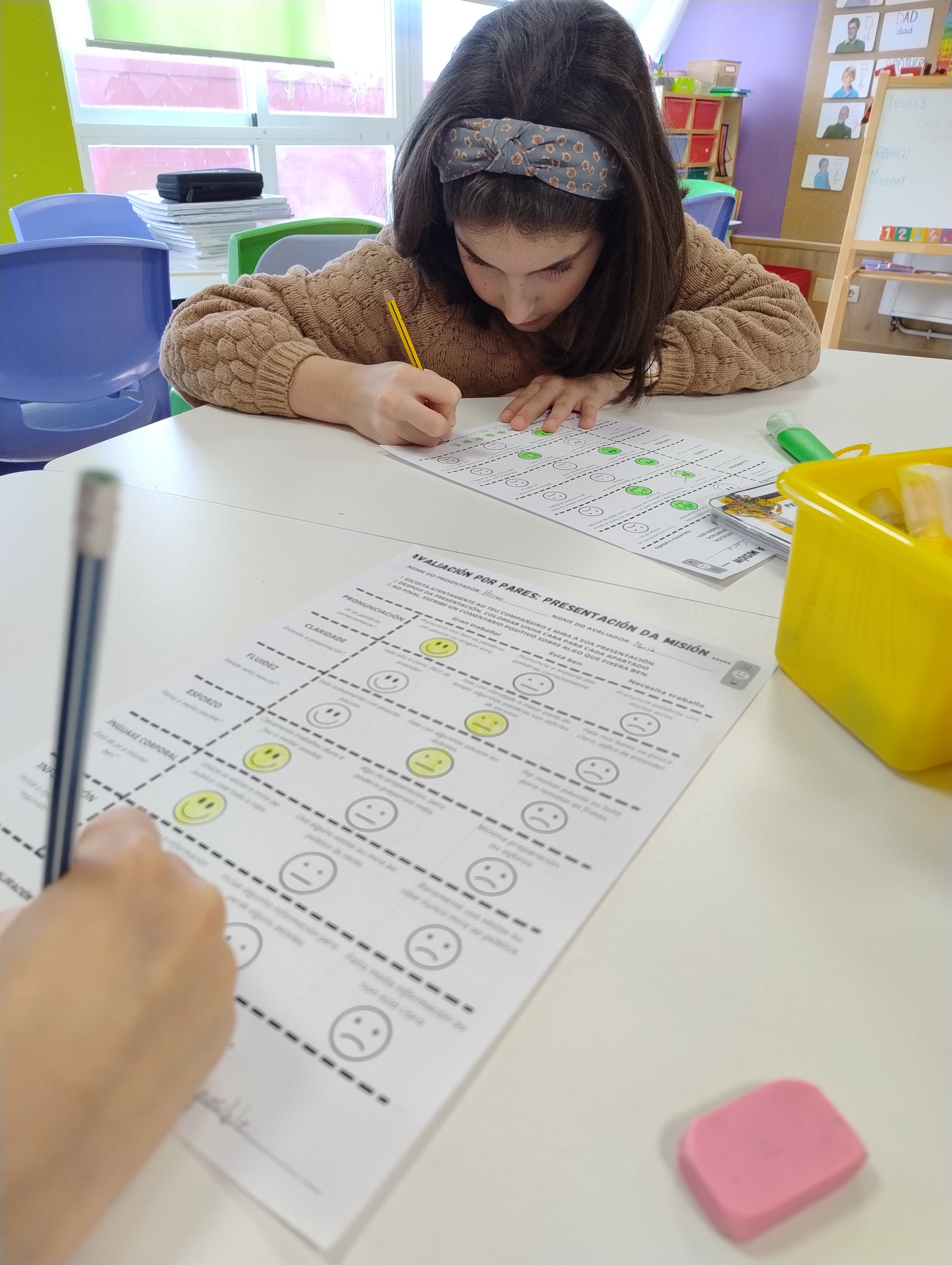 Ao final da misión, tamén fixemos unha avaliación entre iguais das presentacións. Escoitamos as presentacións dos compañeiros e damos retroalimentación positiva e suxestións para mellorar. Isto axudou a mellorar as nosas habilidades de expresión oral e a gañar confianza.