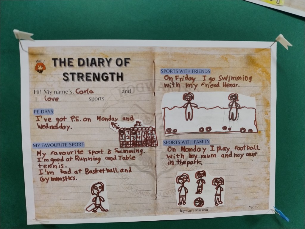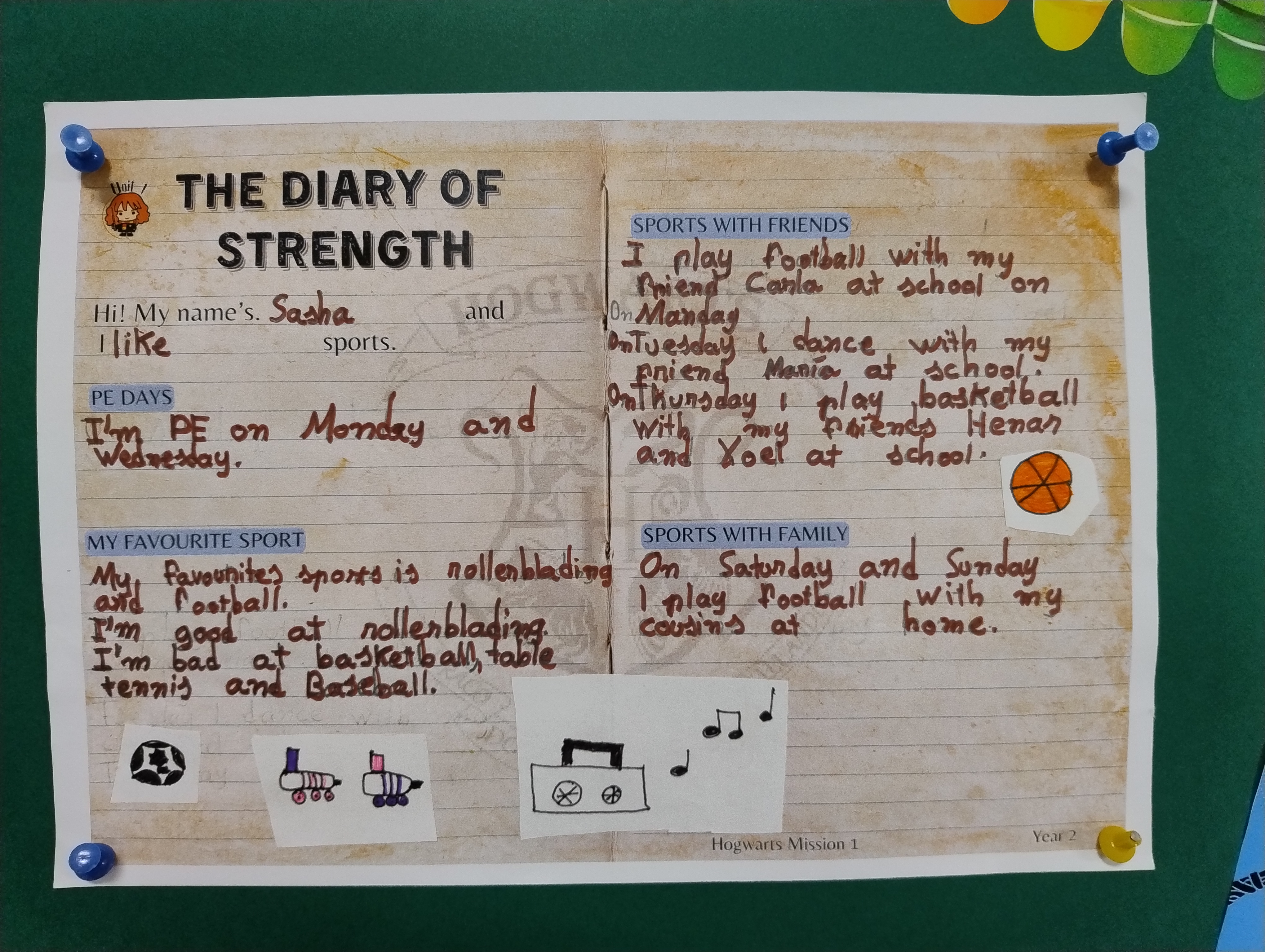 Our 4th-grade class has completed an exciting mission from our Harry Potter gamification adventure. Mission 1 was called “The Diary of Strength”. It was all about sports and self-reflection!