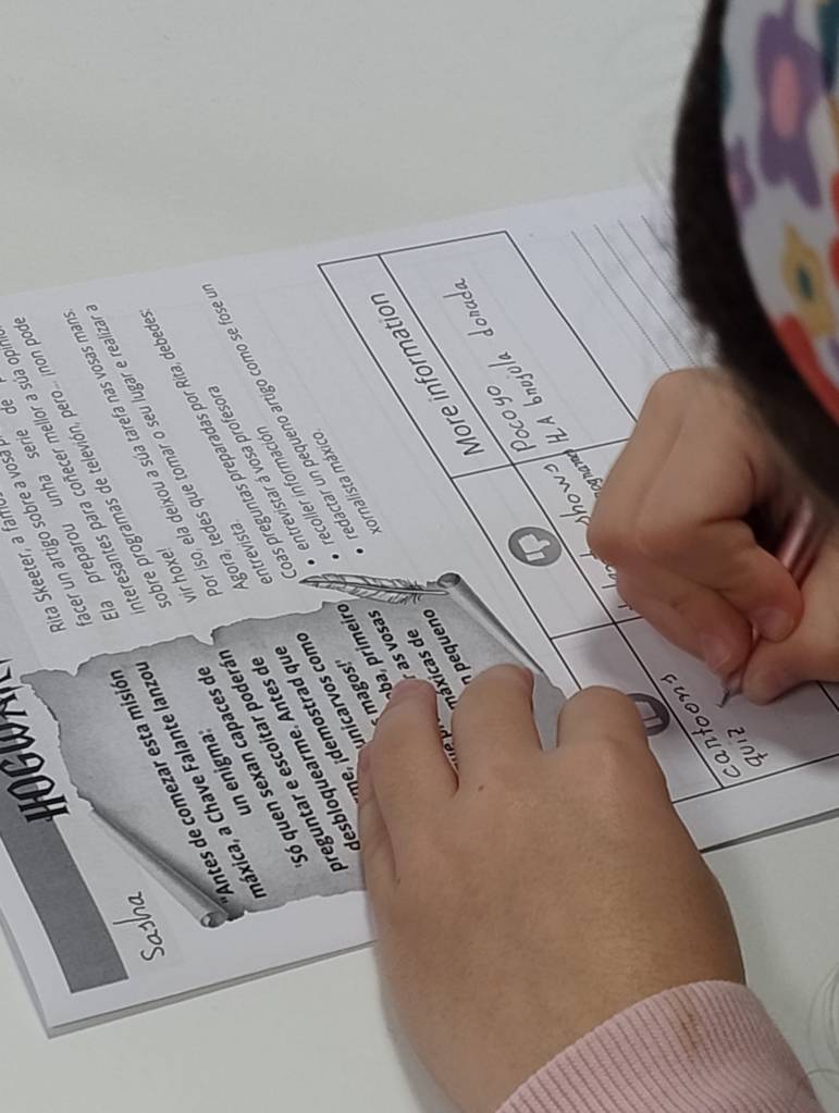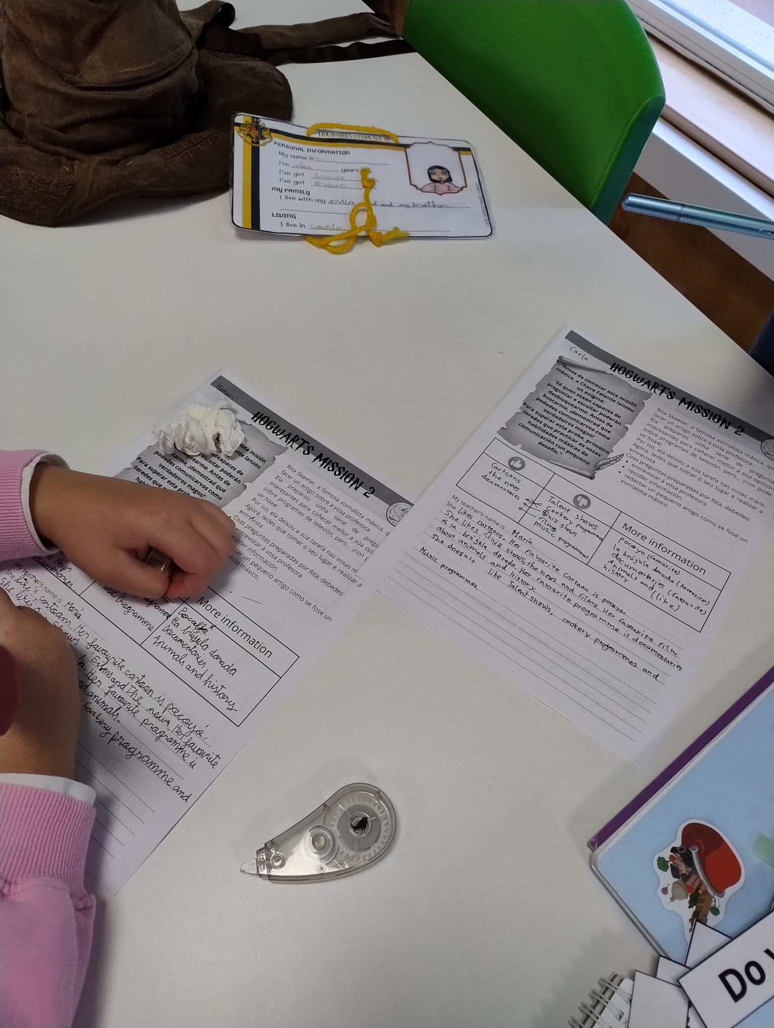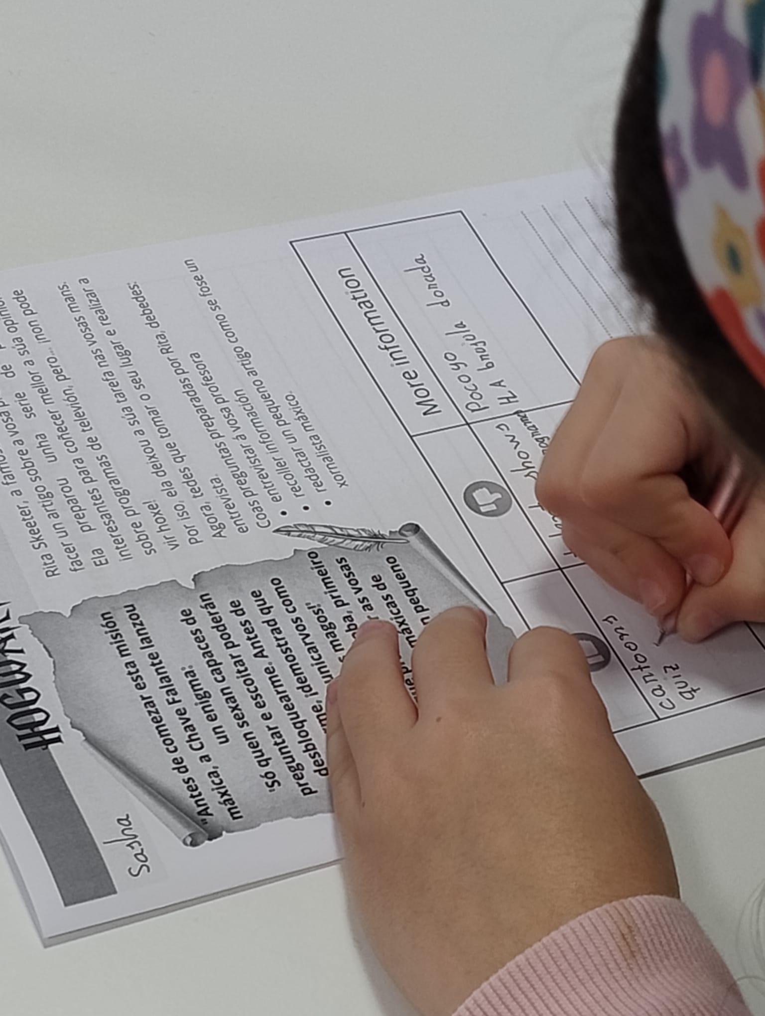 Before we started interviewing our classmates, we put ourselves in the shoes of Rita Skeeter, the famous journalist from the Daily Prophet. With her magical quill and her skill for uncovering secrets, she inspired us to become magical reporters for a day. In this activity: