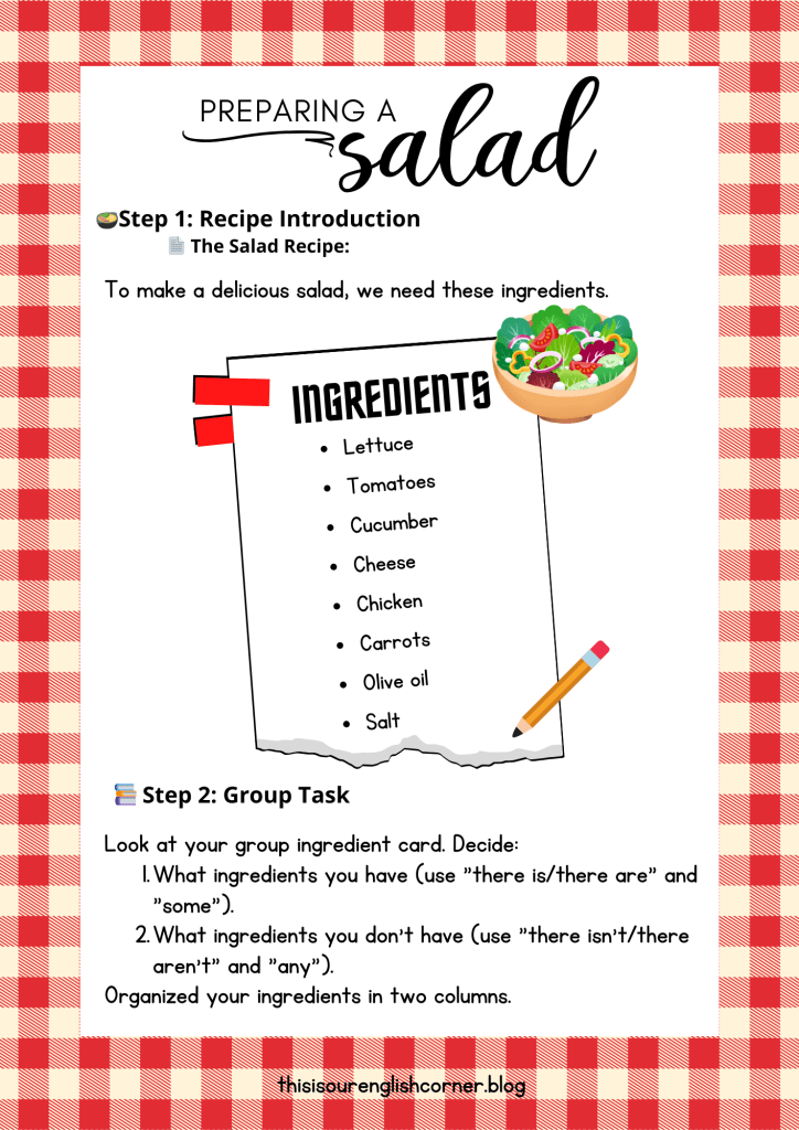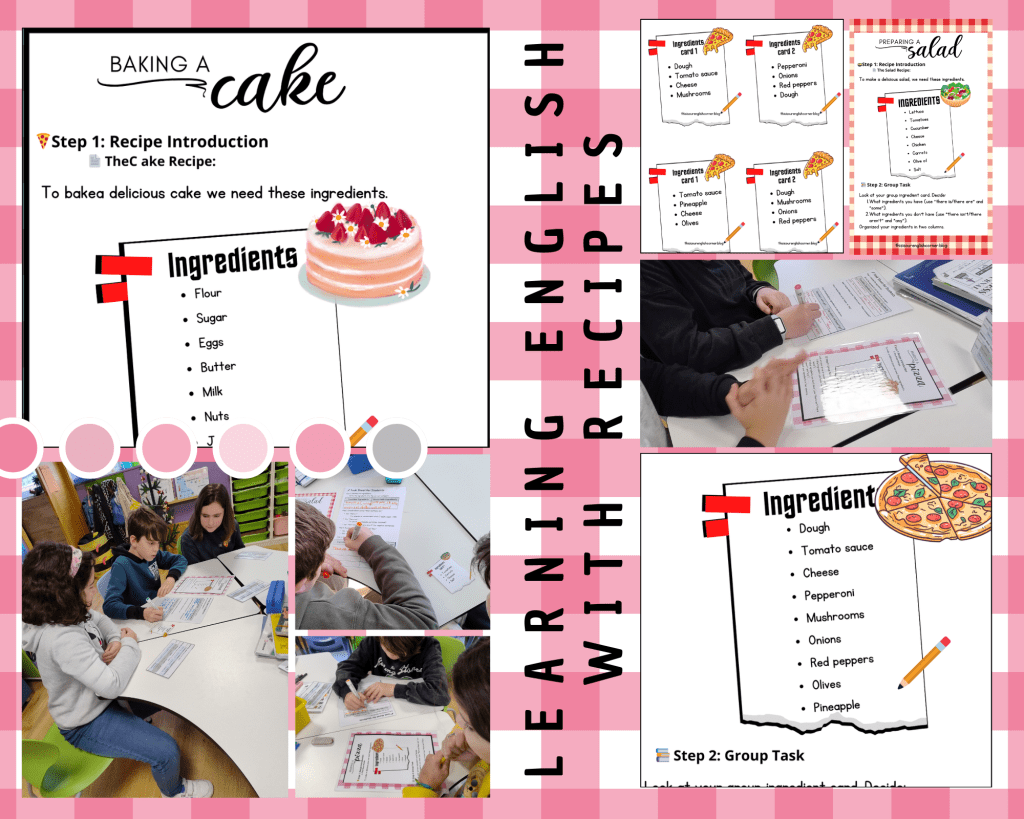 The activity was such a hit that we added pizza and salad recipes, giving students more opportunities to practice English while talking about food.