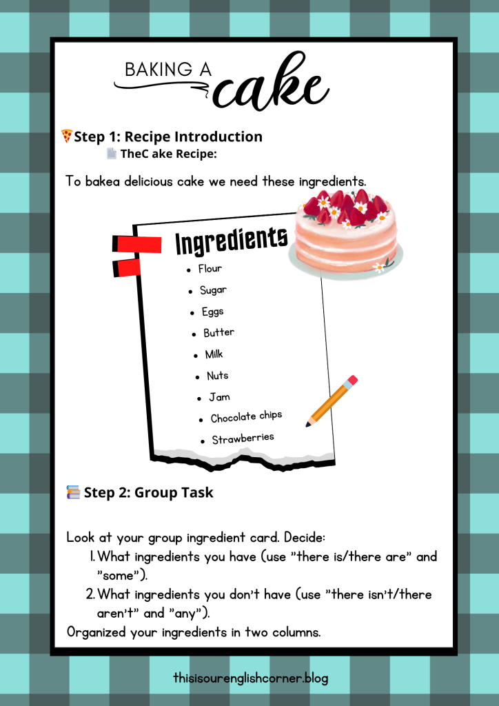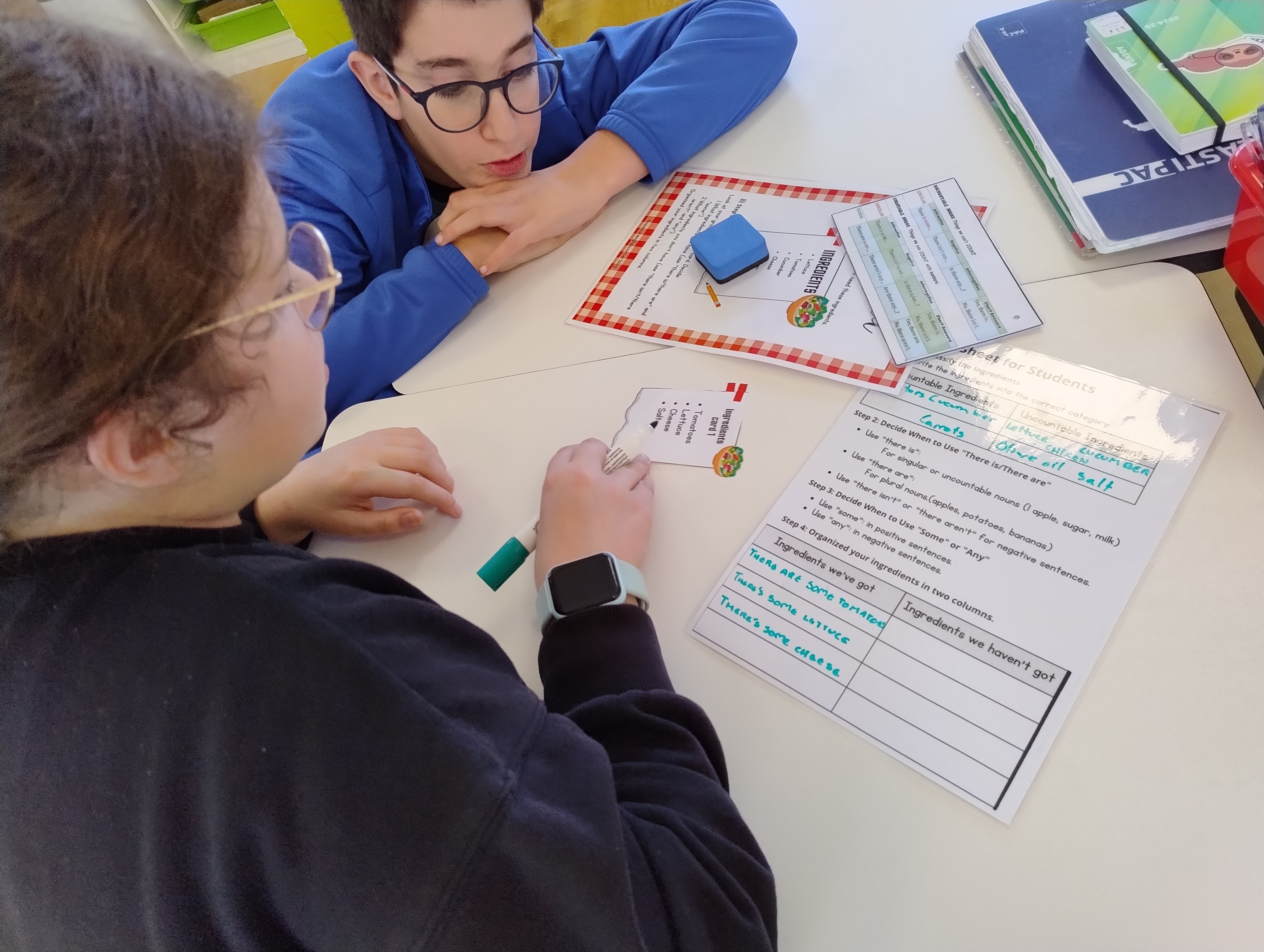 Last week, our 6th-grade students enjoyed an English lesson where they learned to use “there is/there are,” “some,” and “any” through a fun baking activity. They worked in groups to see which ingredients they had and which ones they needed to make a cake!