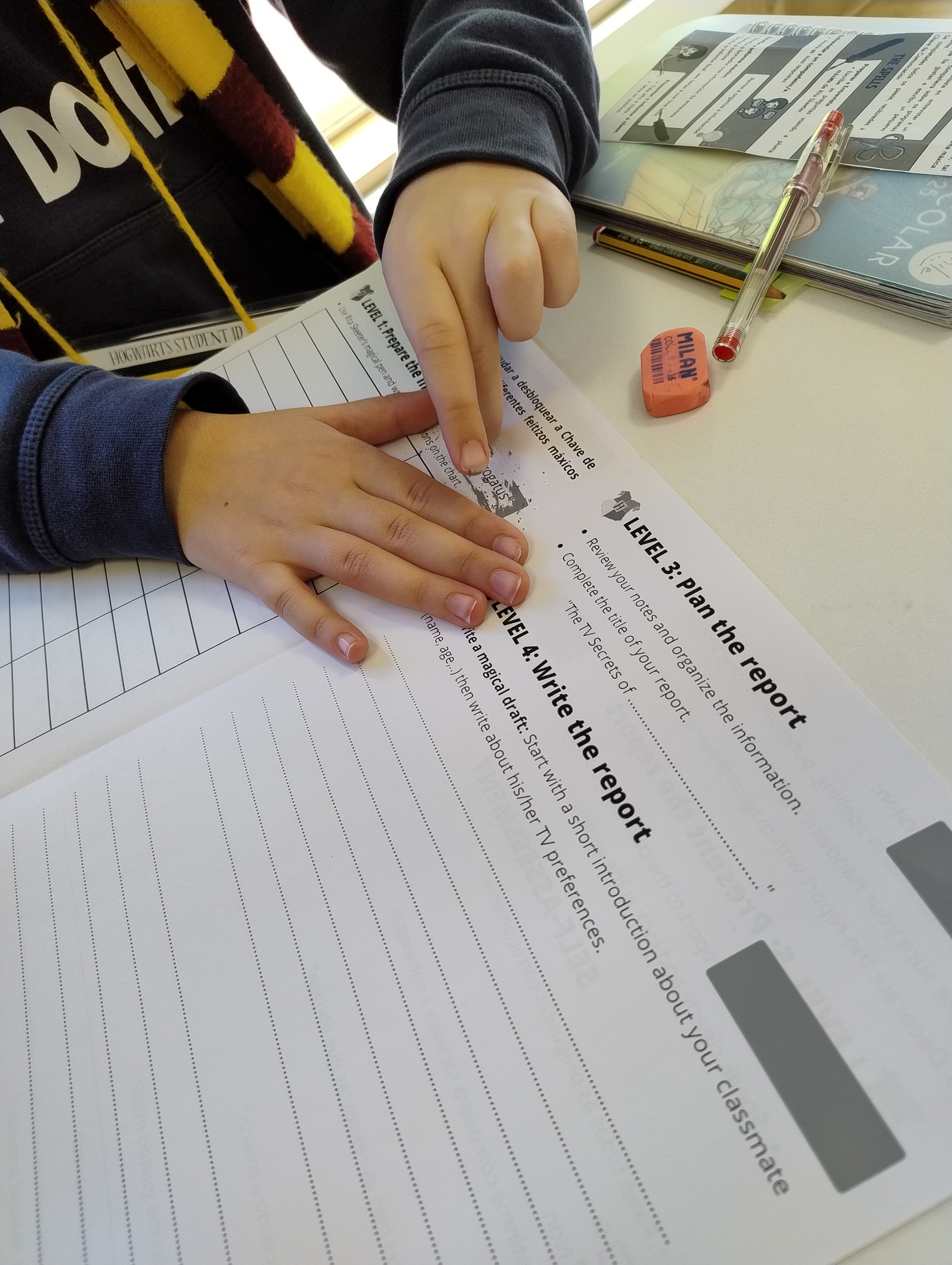 Their task? To interview a 6th-grade friend about their favorite TV shows and write a report to present in class. They asked questions, took notes, and created fantastic reports about their classmates’ tastes in television.